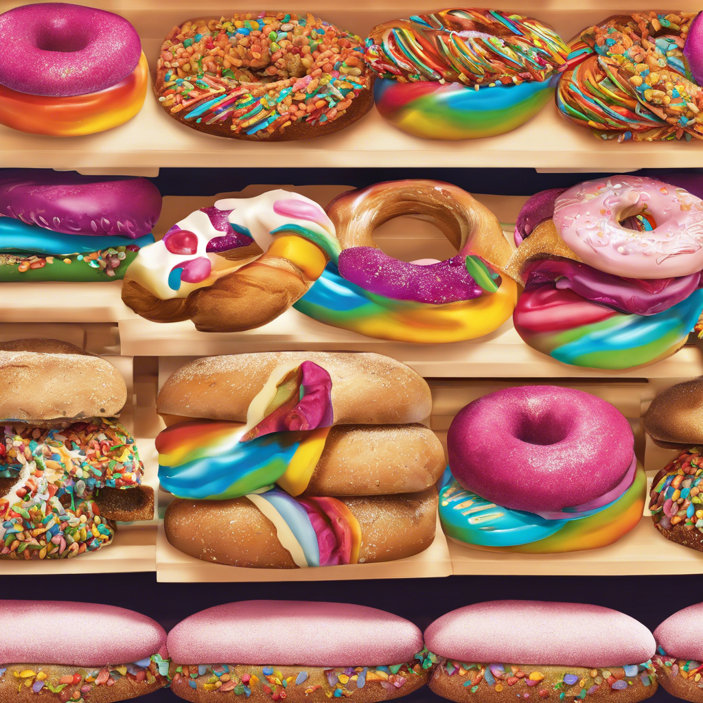 The Rainbow Bagel, a colorful and visually stunning twist on the classic New York bagel, rose to fame in the early 2010s. Created by Scot Rossillo, the "World's Premier Bagel Artist" and owner of The Bagel Store in Brooklyn, these vibrant treats quickly became an Instagram sensation. The process of making these bagels involves layering and twisting different colored doughs to create a mesmerizing rainbow effect. The bagels are then boiled and baked to perfection, resulting in a chewy yet soft texture. Today, The Bagel Store continues to draw crowds seeking the ultimate rainbow bagel experience, complete with fun and flavorful cream cheese spreads.