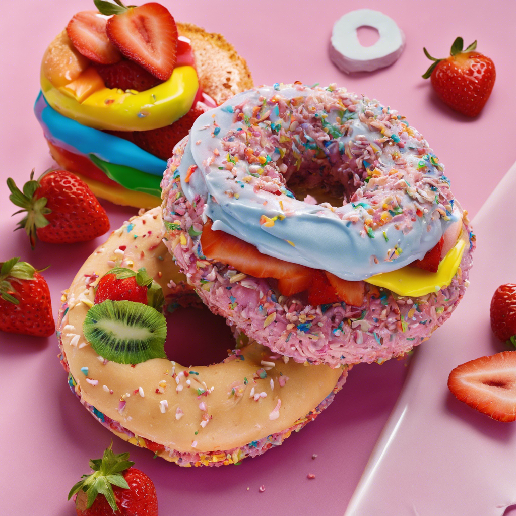 - Spread the strawberry cream cheese mixture on the toasted rainbow bagels.