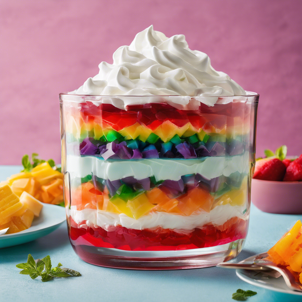 Rainbow Jello Salad with a layer of whipped cream is a delightful and visually stunning dessert that has been a staple at potlucks and family gatherings for decades. This colorful treat is a nostalgic favorite, with its origins dating back to the mid-20th century. The dish gained popularity in the United States during the 1950s and 1960s, becoming a beloved classic in American cuisine. Chefs and home cooks alike have put their own spin on this iconic dessert, with variations in the choice of gelatin flavors and the arrangement of the colorful layers. The addition of a luscious layer of whipped cream adds a creamy and indulgent touch to the classic recipe, elevating its taste and texture. While the origins of Rainbow Jello Salad with whipped cream are not attributed to a specific chef or restaurant, it has become a beloved tradition in many American households. The Midwest, in particular, has a strong affinity for this dessert, with families passing down their cherished recipes through generations. To create the best version of this dish, it's essential to use high-quality gelatin in a variety of vibrant colors to achieve the signature rainbow effect. Additionally, the whipped cream layer should be light and fluffy, adding a delightful contrast to the firm Jello layers. For those seeking a famous alternative method, some recipes incorporate a layer of sweetened condensed milk or cream cheese mixture instead of whipped cream, adding a rich and creamy element to the dessert. Today, the best versions of Rainbow Jello Salad with whipped cream can be found at community gatherings, church potlucks, and family reunions, where it continues to bring joy and nostalgia to those who indulge in its colorful layers and creamy goodness.