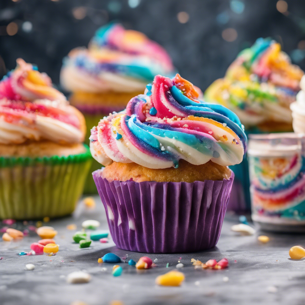Rainbow Swirl Cupcakes are a delightful treat that has captured the hearts and taste buds of dessert lovers around the world. This whimsical confection features a moist and fluffy vanilla cupcake base, swirled with vibrant colors to create a mesmerizing rainbow effect. The crowning glory of these cupcakes is the generous dollop of extra creamy and luscious frosting, adding an indulgent touch to every bite. The history of Rainbow Swirl Cupcakes can be traced back to the creative minds of pastry chefs who sought to elevate the classic cupcake into a work of art. This playful and visually stunning dessert gained popularity in the United States, particularly in trendy bakeries and artisanal dessert shops. One renowned establishment that has perfected the art of Rainbow Swirl Cupcakes is Sweet Delights Bakery in New York City. Their expert bakers skillfully craft each cupcake with precision, ensuring that the swirls are vibrant and the frosting is generously piled high. The result is a delectable treat that not only satisfies the sweet tooth but also captivates with its aesthetic appeal. To create the best version of Rainbow Swirl Cupcakes at home, it's essential to pay attention to the consistency of the cupcake batter to achieve the perfect texture. Additionally, using high-quality food coloring is crucial to achieve vivid and distinct rainbow hues. As for the frosting, a blend of butter, confectioners' sugar, and vanilla extract creates a rich and velvety topping that takes these cupcakes to the next level. For those seeking a famous alternative method, some bakers opt for a tie-dye effect by layering different colored batters in the cupcake liners before swirling them together. This technique results in a stunning marbled effect that is equally enchanting. Whether enjoyed at a bustling bakery in the heart of a vibrant city or lovingly baked at home, Rainbow Swirl Cupcakes with extra frosting are a delightful celebration of color, flavor, and creativity.