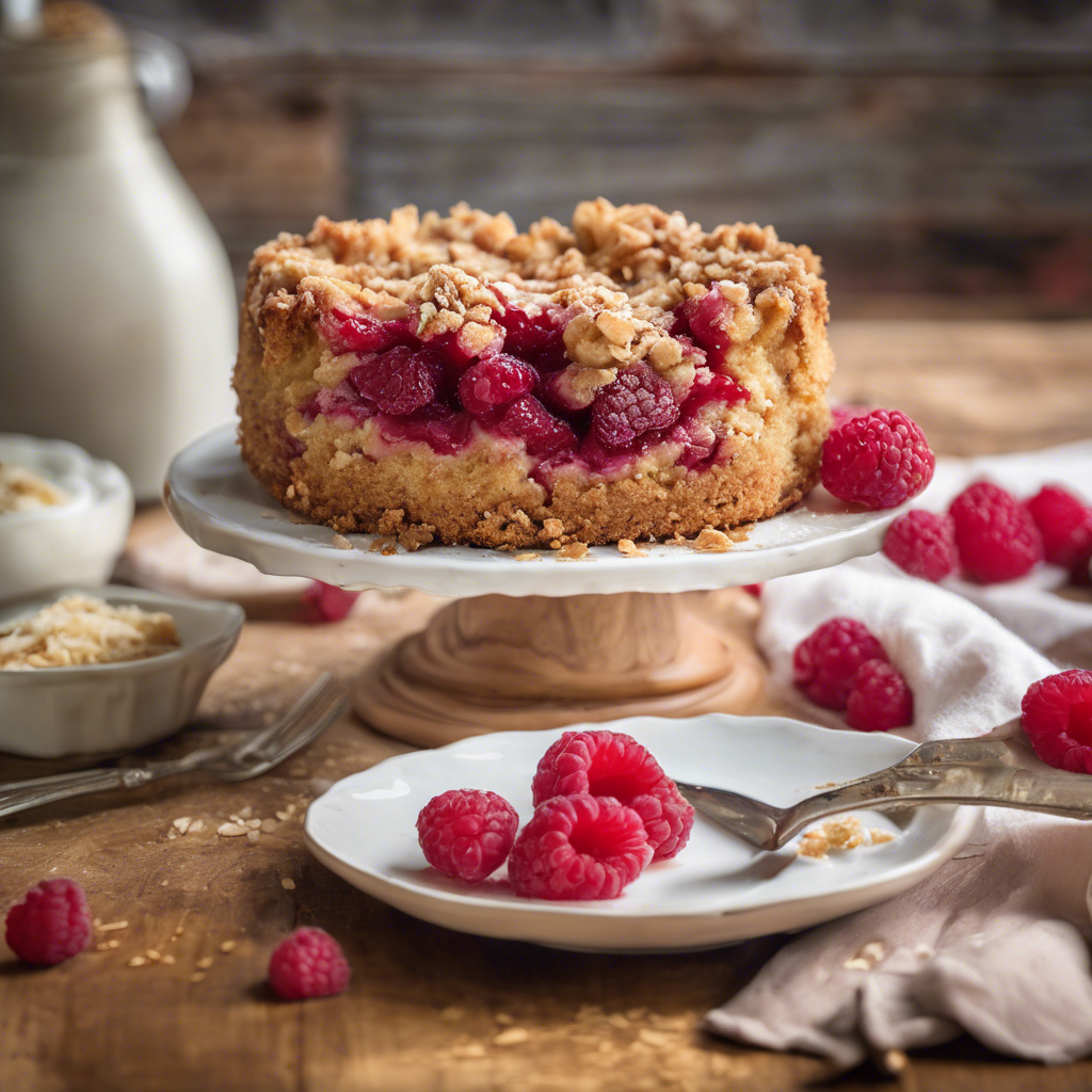 - Slice and serve the raspberry almond crumb cake. Enjoy!