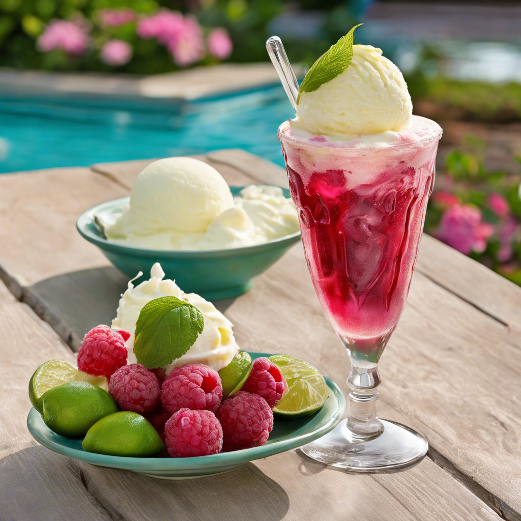 The Raspberry Lime Float with a scoop of vanilla ice cream is a delightful and refreshing dessert that has been enjoyed for decades. This classic treat features the perfect combination of tangy raspberry, zesty lime, and creamy vanilla flavors. Originating in the United States, this dessert has become a popular choice in restaurants and ice cream parlors across the country. Renowned chefs and culinary experts have put their own unique spin on this timeless dessert, incorporating fresh raspberries, hand-squeezed lime juice, and premium vanilla ice cream to create a truly indulgent experience. The best versions of this dish can be found in artisanal ice cream shops and upscale eateries that prioritize using high-quality, locally sourced ingredients. To make this delectable treat at home, it's essential to use ripe, juicy raspberries and freshly squeezed lime juice to achieve the perfect balance of sweet and tart flavors. Additionally, opting for a high-quality vanilla ice cream will elevate the overall taste and texture of the float. For a fun twist on the traditional recipe, some enthusiasts have experimented with alternative methods, such as infusing the raspberry-lime mixture with a hint of mint or adding a splash of sparkling water for a fizzy finish. Whether enjoyed on a hot summer day or as a sweet ending to a meal, the Raspberry Lime Float with a scoop of vanilla ice cream is a timeless dessert that continues to captivate dessert lovers of all ages.