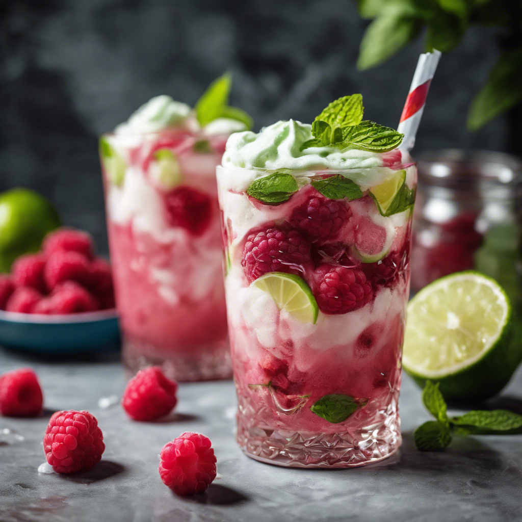 The Raspberry Lime Float with added fresh mint leaves is a refreshing and vibrant twist on the classic dessert. This delightful concoction originated in the sunny kitchens of California, where innovative chefs sought to elevate the traditional float with a burst of zesty lime and the invigorating aroma of fresh mint. The marriage of sweet raspberries, tangy lime, and aromatic mint creates a symphony of flavors that dance on the palate. This delightful treat is best enjoyed on a warm summer day, and it has become a popular choice in trendy eateries and artisanal ice cream parlors across the country. For the best version of this dish, seek out establishments that use high-quality, ripe raspberries, freshly squeezed lime juice, and fragrant, hand-picked mint leaves. The key to perfecting this recipe lies in the balance of sweet and tart flavors, as well as the aromatic essence of the mint. Whether you're indulging in this delightful dessert at a chic bistro in San Francisco or a quaint ice cream shop in Napa Valley, the Raspberry Lime Float with fresh mint leaves is sure to leave a lasting impression.