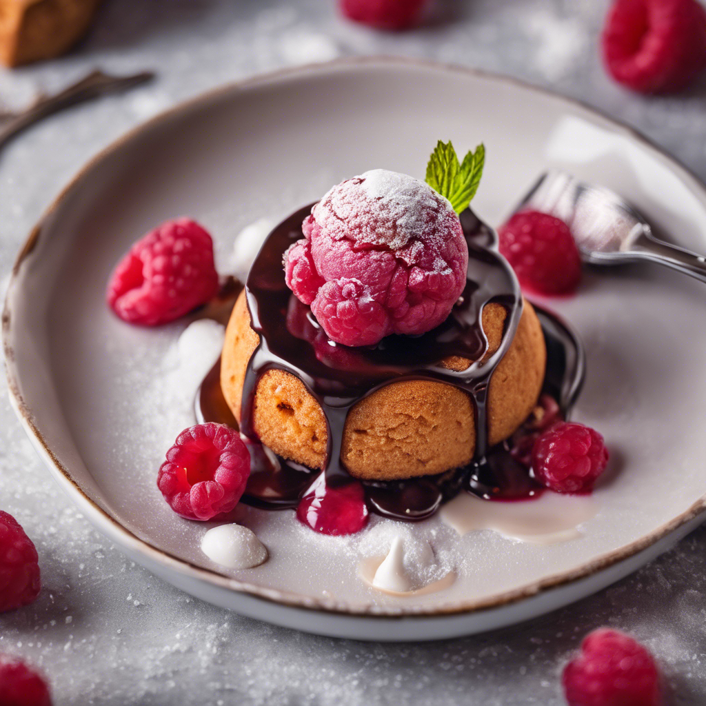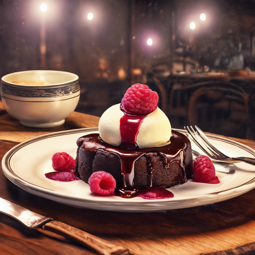 The Raspberry Molten Lava Cake is a decadent dessert that originated in the 1980s, gaining popularity in fine dining restaurants across the United States. This indulgent treat features a rich, chocolate cake with a gooey, molten raspberry center that oozes out when cut into. The addition of tart raspberries adds a delightful contrast to the sweetness of the chocolate. When served with a scoop of creamy vanilla ice cream, the warm and cold elements create a harmonious flavor and texture experience. Chefs like Jean-Georges Vongerichten have popularized this dessert, and it has become a staple in upscale eateries. Today, the best versions of this dish can be found in renowned pastry shops and high-end restaurants, where skilled pastry chefs meticulously craft each cake to ensure the perfect molten center. To achieve the ideal Raspberry Molten Lava Cake, it's crucial to use high-quality chocolate and fresh raspberries. While the traditional recipe calls for baking the cakes at a high temperature for a short time to achieve the molten center, some chefs have developed alternative methods, such as using a combination of frozen raspberries and raspberry jam to achieve the desired lava-like consistency. Whether enjoyed at a Michelin-starred restaurant or homemade with a personal touch, the Raspberry Molten Lava Cake with vanilla ice cream is a delightful indulgence for any dessert enthusiast.