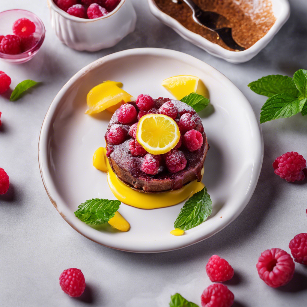 The Raspberry Molten Lava Cake with a hint of lemon zest is a decadent dessert that combines the rich, gooey texture of a traditional molten lava cake with the bright, tangy flavor of fresh raspberries and zesty lemon. This indulgent treat has its origins in the fusion of classic French baking techniques with the vibrant flavors of the Mediterranean. Renowned chefs like Gordon Ramsay and Ina Garten have popularized this dessert, infusing it with their own unique twists. The best version of this dish can be found in upscale patisseries and fine dining restaurants, where expert pastry chefs skillfully balance the sweetness of the raspberries with the citrusy brightness of lemon zest. To achieve the perfect Raspberry Molten Lava Cake, it's crucial to use high-quality raspberries and freshly grated lemon zest for a burst of flavor in every bite. For a unique twist, some chefs also incorporate a splash of limoncello or lemon liqueur into the cake batter for an extra layer of complexity.