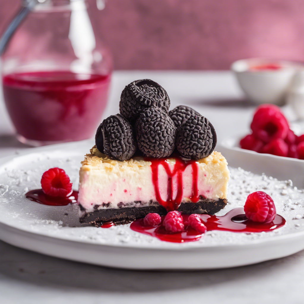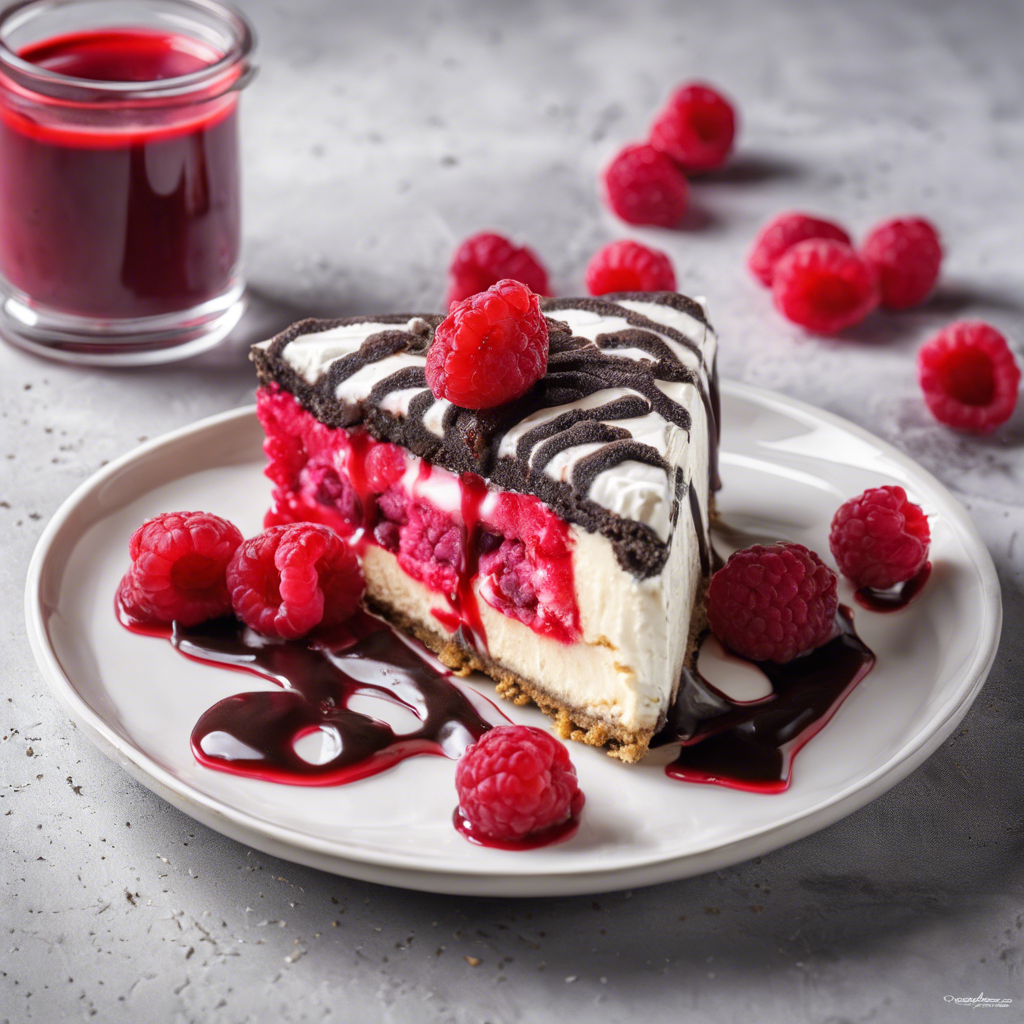 The Raspberry Oreo Cheesecake with a luscious raspberry coulis topping is a delightful twist on the classic dessert. This decadent treat combines the rich, creamy texture of cheesecake with the tartness of fresh raspberries and the irresistible crunch of Oreo cookie crust. Originating in the United States, this dessert has gained popularity in upscale bakeries and restaurants across the country. Renowned chefs have put their own spin on this dessert, incorporating locally sourced raspberries and artisanal Oreo cookies for a unique flavor profile. For the best version of this dish, look for a cheesecake with a velvety smooth texture, a perfectly balanced raspberry coulis, and a generous layer of Oreo crust.