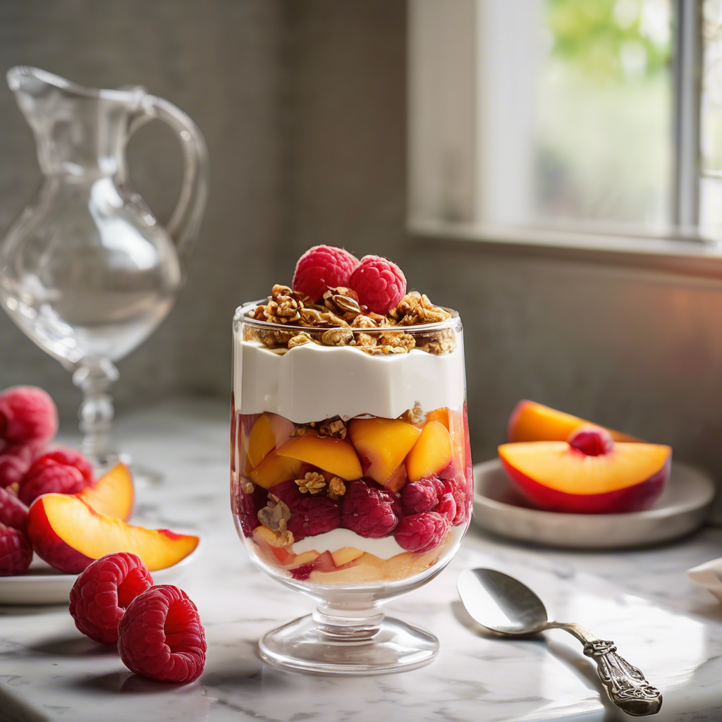 Raspberry Peach Parfait is a delightful dessert that originated in France. This luscious treat is a perfect blend of sweet and tangy flavors, with layers of ripe peaches, fresh raspberries, and creamy yogurt or whipped cream. The dish gained popularity in the 18th century and has since become a beloved classic in French cuisine. Renowned chefs like Julia Child and Jacques Pépin have celebrated the Raspberry Peach Parfait for its simplicity and elegance. Today, the best versions of this dish can be found in upscale French restaurants and patisseries, where the quality of the fruit and the creaminess of the yogurt are crucial for a perfect parfait. For a twist, some chefs incorporate granola or honey for added texture and sweetness. Whether enjoyed in a Parisian bistro or homemade in your kitchen, Raspberry Peach Parfait is a timeless indulgence that never fails to impress.