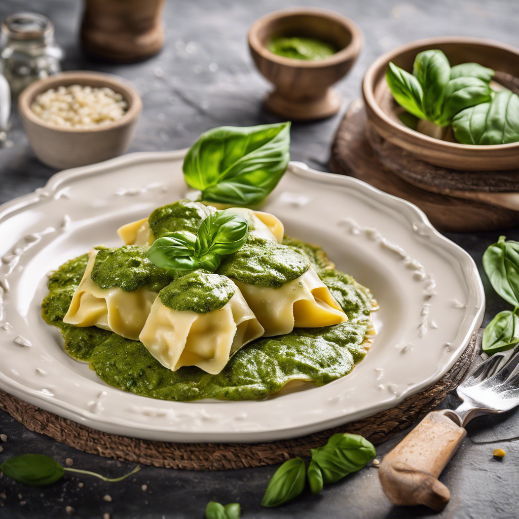 Ravioli with Pesto Sauce is a classic Italian dish that has been enjoyed for centuries. The origins of ravioli can be traced back to the 14th century in the Italian region of Liguria, where it was first mentioned in a manuscript. Pesto sauce, made from fresh basil, pine nuts, garlic, Parmesan cheese, and olive oil, is a staple of Ligurian cuisine and pairs perfectly with the delicate flavors of ravioli. Today, this dish can be found in many Italian restaurants around the world, but for an authentic experience, head to Liguria or the neighboring region of Piedmont, where skilled chefs continue to perfect the art of making ravioli with pesto sauce. The key to a great ravioli with pesto sauce lies in the quality of the ingredients, especially the fresh basil and Parmesan cheese. For a unique twist, some chefs also incorporate other herbs like parsley or mint into their pesto sauce, adding a refreshing complexity to the dish. Whether enjoyed in a cozy trattoria in Liguria or made at home with a cherished family recipe, ravioli with pesto sauce is a timeless Italian delight that never fails to satisfy.