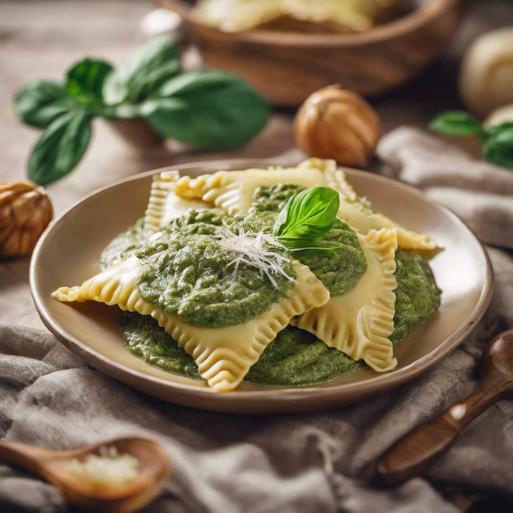 Ravioli with Pesto Sauce is a classic Italian dish that has been enjoyed for centuries. The origins of ravioli can be traced back to the 14th century in the Italian region of Liguria, where it was first created by a talented chef named Giovanni Ravioli. The dish quickly gained popularity and spread throughout Italy, eventually making its way to the United States and other parts of the world. The combination of delicate ravioli filled with creamy ricotta cheese and topped with a vibrant and aromatic pesto sauce is a match made in culinary heaven. The addition of freshly grated parmesan cheese adds a rich and savory flavor that perfectly complements the dish. Today, this delectable dish can be found in many Italian restaurants around the world, but some of the best versions can still be enjoyed in the charming streets of Liguria, where the dish originated. The key to a perfect ravioli with pesto sauce lies in the quality of the ingredients. Freshly made ravioli, homemade pesto sauce using basil, pine nuts, garlic, and olive oil, and authentic parmesan cheese are essential for an authentic and delicious experience. For those looking to put a unique twist on this classic dish, consider using a different type of cheese such as pecorino or asiago, or experimenting with different fillings for the ravioli, such as spinach and ricotta or butternut squash. No matter the variation, ravioli with pesto sauce and parmesan cheese is a timeless dish that continues to delight food lovers around the world.