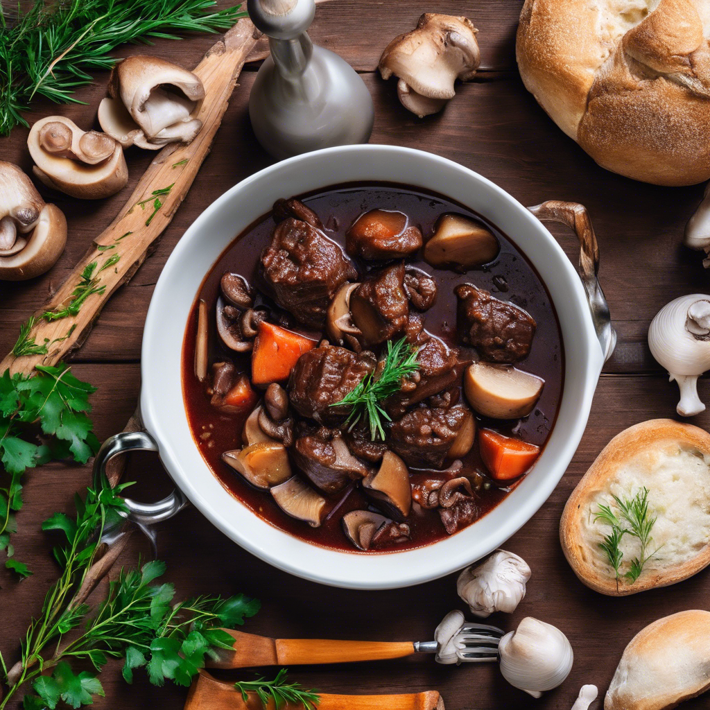 Red Wine Beef Stew with added mushrooms is a classic dish that has been enjoyed for centuries. Originating in France, this hearty stew has become a staple in many households and restaurants around the world. The rich and robust flavors of the red wine, tender beef, and earthy mushrooms come together to create a truly comforting and satisfying meal. Renowned chefs such as Julia Child and Jacques Pépin have popularized this dish, showcasing its versatility and depth of flavor. In France, regions like Burgundy and Bordeaux are known for their exceptional red wines, which are often used in the preparation of this stew, adding a distinct depth of flavor. Today, the best versions of this dish can be found in traditional French bistros and fine dining establishments, where chefs take pride in using high-quality ingredients and slow-cooking methods to achieve the perfect balance of flavors. The key to making a delicious Red Wine Beef Stew with added mushrooms lies in the quality of the beef, the choice of red wine, and the slow simmering process, allowing the flavors to meld together beautifully. For a twist on the classic recipe, some chefs may add bacon or pearl onions to enhance the richness of the stew, while others may opt for a lighter variation by incorporating herbs like thyme and rosemary. Whether enjoyed on a chilly evening or as a centerpiece for a special occasion, Red Wine Beef Stew with added mushrooms is a timeless dish that continues to captivate food enthusiasts worldwide.