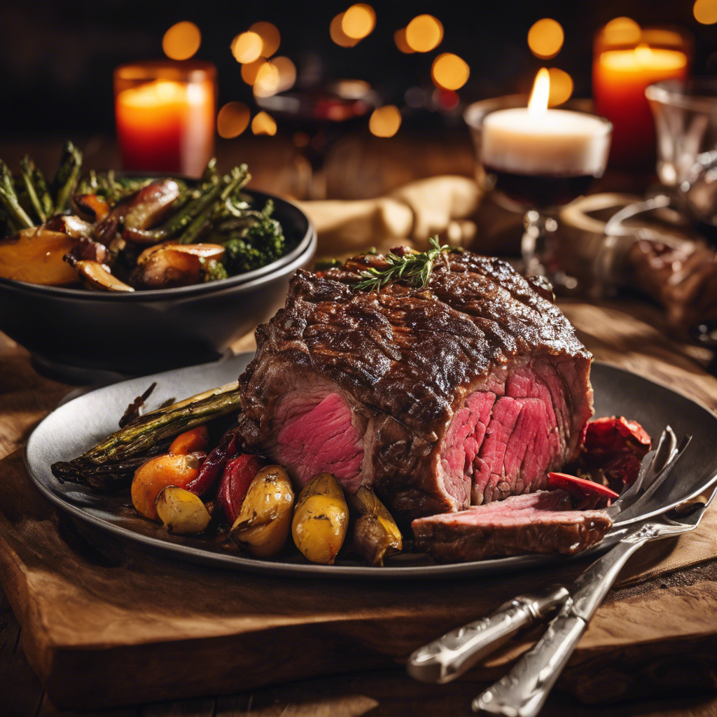 The history of Red Wine Marinated Poor Man's Prime Rib dates back to the Great Depression when families had to make do with more affordable cuts of meat. This dish became a popular alternative to the expensive prime rib, offering a similar flavor profile at a fraction of the cost. The marination process was a way to tenderize the tougher meat, infusing it with the rich flavors of red wine, herbs, and spices. Today, this dish has evolved into a beloved classic, often found in cozy, family-owned restaurants and gastropubs across the country. Chefs take pride in marinating the meat for hours, allowing the flavors to meld and transform the humble cut into a succulent, flavorful delight. The side of roasted vegetables adds a rustic touch, complementing the richness of the meat with their caramelized sweetness. For the best version of this dish, head to traditional steakhouses or rustic farm-to-table eateries, where the chefs prioritize sourcing high-quality, well-marbled cuts of beef and marinating them with care. The key to getting this dish right lies in the marination process and the quality of the meat. The red wine, garlic, and herbs infuse the meat with depth, while the slow roasting ensures a tender, juicy result. An alternative method for making this dish involves slow-cooking the marinated meat in a Dutch oven or slow cooker, allowing the flavors to intensify and the meat to become incredibly tender. This method is perfect for home cooks looking for a hands-off approach to achieving a melt-in-your-mouth result. Whether enjoyed at a rustic countryside inn or prepared at home with love, Red Wine Marinated Poor Man's Prime Rib with roasted vegetables is a comforting, soul-warming dish that pays homage to humble beginnings while delighting the palate with its rich, robust flavors.