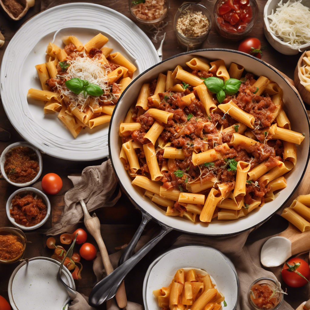 - Toss the cooked rigatoni pasta with the bolognese sauce until well combined.