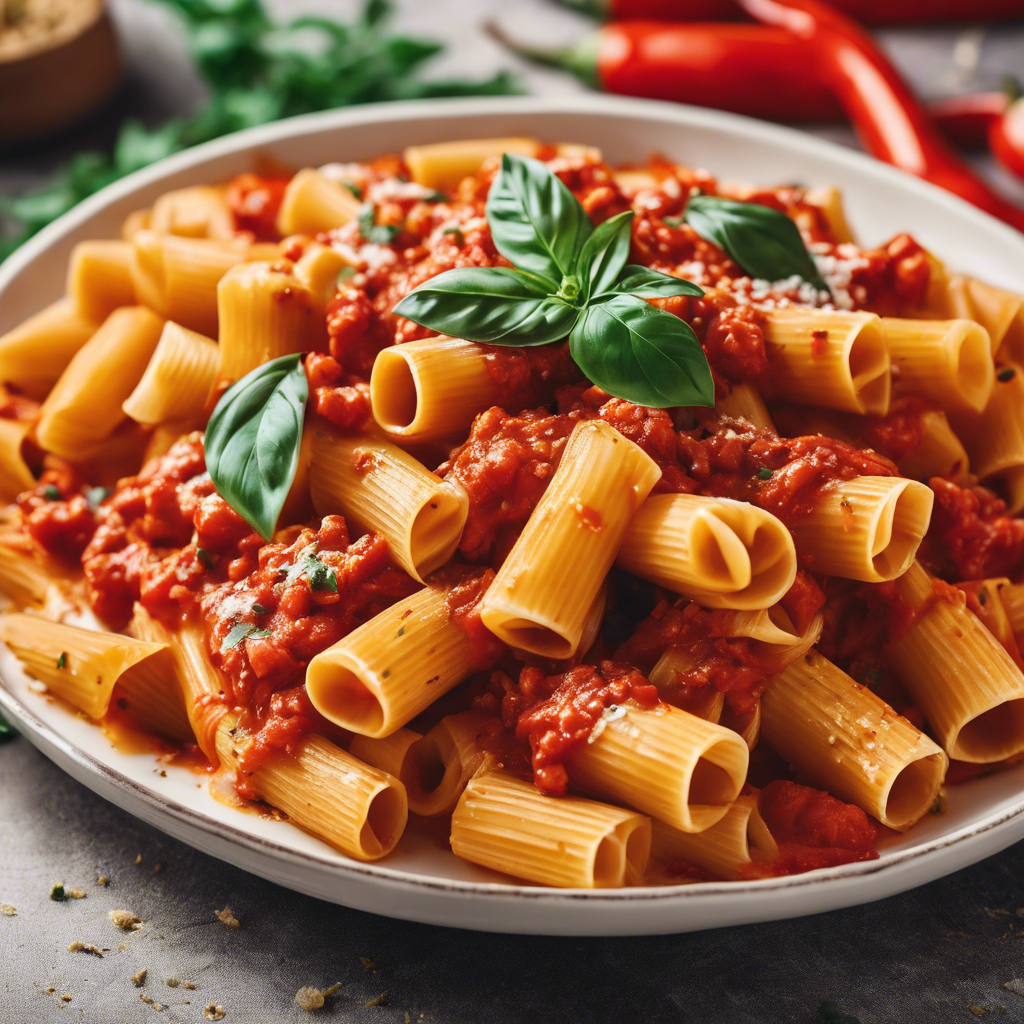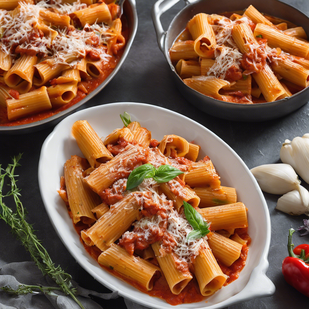 Rigatoni with Roasted Red Pepper Sauce is a classic Italian pasta dish that has been enjoyed for generations. The dish originated in the southern regions of Italy, where the rich and flavorful roasted red peppers are a staple ingredient in many traditional recipes. The sauce is made by blending roasted red peppers with garlic, onions, tomatoes, and a variety of herbs and spices to create a vibrant and savory sauce that pairs perfectly with the hearty rigatoni pasta. One of the most famous versions of this dish can be found in the charming trattorias of Rome, where skilled chefs expertly prepare the sauce to perfection. The key to a delicious Rigatoni with Roasted Red Pepper Sauce lies in the quality of the ingredients, especially the roasted red peppers. It's important to use ripe, sweet peppers and to roast them until they are charred and tender to bring out their natural sweetness and smoky flavor. For a unique twist on this classic dish, some chefs add a touch of cream or cheese to the sauce to create a creamy and indulgent variation. This adds a luxurious richness to the dish and elevates the flavors to new heights. Whether enjoyed in a rustic Italian trattoria or prepared at home, Rigatoni with Roasted Red Pepper Sauce is a delightful and satisfying pasta dish that captures the essence of Italian cuisine.