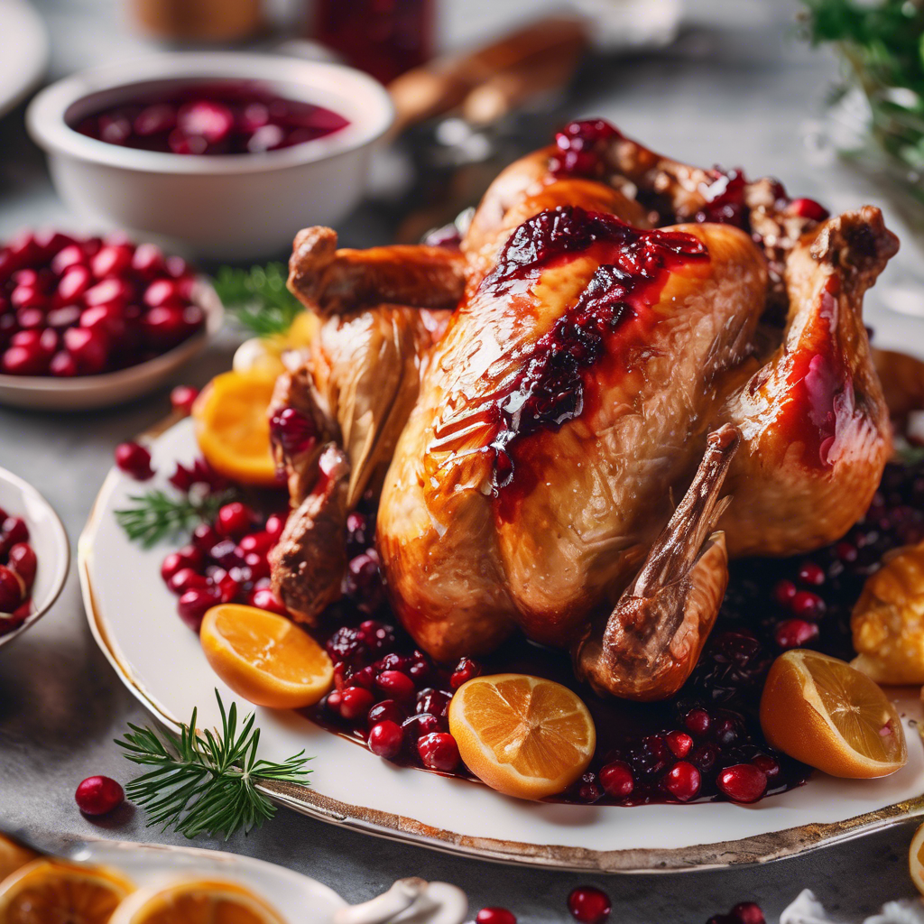 Roast Chicken with Cranberry Glaze is a classic dish that combines the savory flavors of roasted chicken with the sweet and tangy taste of cranberries. This dish has a rich history, with roots in traditional American and European cuisine. The combination of tender, juicy chicken and the tartness of cranberries has been a favorite for holiday feasts and special occasions for generations. Chefs and home cooks alike have put their own spin on this dish, adding their unique flair to the recipe. Some popular variations include using different herbs and spices to season the chicken, or experimenting with different types of cranberry glazes, such as adding orange zest or a hint of cinnamon for extra depth of flavor. In terms of regional influence, the dish has been embraced across the United States, with variations popping up in different regions. In the South, you might find a version of this dish with a touch of heat, while in New England, the cranberry glaze might be made with maple syrup for a sweet twist. Today, the best versions of this dish can be found in upscale restaurants that prioritize using high-quality, locally sourced ingredients. The key to getting this dish right lies in achieving the perfect balance of flavors - the chicken should be tender and succulent, while the cranberry glaze should be sweet, tangy, and slightly sticky. For those looking to try a famous alternative method for making this dish, consider spatchcocking the chicken before roasting it. This technique involves removing the backbone of the chicken and flattening it, resulting in a quicker and more even cooking process, as well as a beautifully crispy skin. Whether you're a seasoned chef or a home cook looking to impress, Roast Chicken with Cranberry Glaze is a timeless dish that never fails to delight the taste buds.