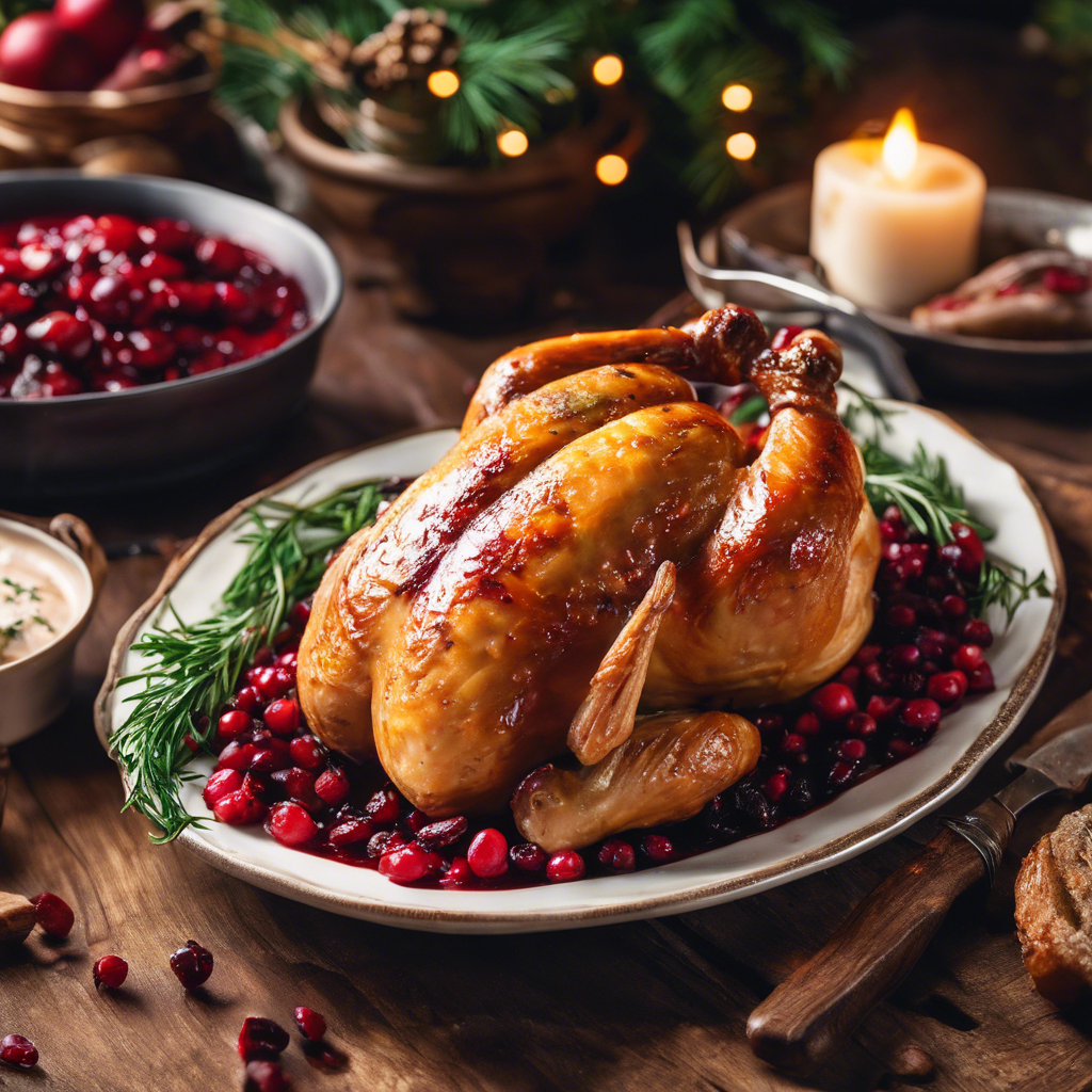 Roast Chicken with Cranberry Sauce is a classic dish that has been enjoyed for generations. The succulent, tender chicken paired with the sweet and tangy cranberry sauce creates a perfect balance of flavors. This dish has its roots in traditional American and European cuisine, with variations found in different regions. Chefs like Julia Child and Gordon Ramsay have popularized their own versions of this dish, adding their unique twists to the recipe. Today, the best versions of this dish can be found in cozy, family-owned restaurants that take pride in using high-quality, locally sourced ingredients. The key to a perfect Roast Chicken with Cranberry Sauce lies in achieving crispy, golden skin on the chicken and a rich, flavorful cranberry sauce. For a twist, some chefs also incorporate herbs like rosemary and thyme to elevate the dish's aroma and taste. Whether enjoyed at a rustic countryside eatery or a fine dining establishment, this dish continues to be a beloved comfort food for many.