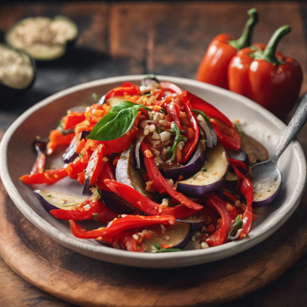 Roasted Red Pepper and Eggplant Salad is a Mediterranean dish with a rich history dating back centuries. This vibrant salad is a staple in Middle Eastern and Mediterranean cuisine, known for its bold flavors and healthy ingredients. Chefs in the region have perfected the art of charring red peppers and eggplants to create a smoky, savory flavor profile. The dish has evolved over time, with various regions adding their own unique twists, such as the use of local herbs and spices. Today, the best versions of this dish can be found in authentic Mediterranean restaurants, where skilled chefs carefully roast the vegetables to perfection. The key to a great Roasted Red Pepper and Eggplant Salad lies in the quality of the ingredients and the balance of flavors. It's important to get the roasting just right to achieve that irresistible smokiness, and to use fresh, ripe vegetables for the best results. While the traditional method involves grilling the vegetables, some chefs also roast them in the oven for a slightly different flavor profile. Whether enjoyed as a side dish or a main course, this salad is a true celebration of Mediterranean flavors.