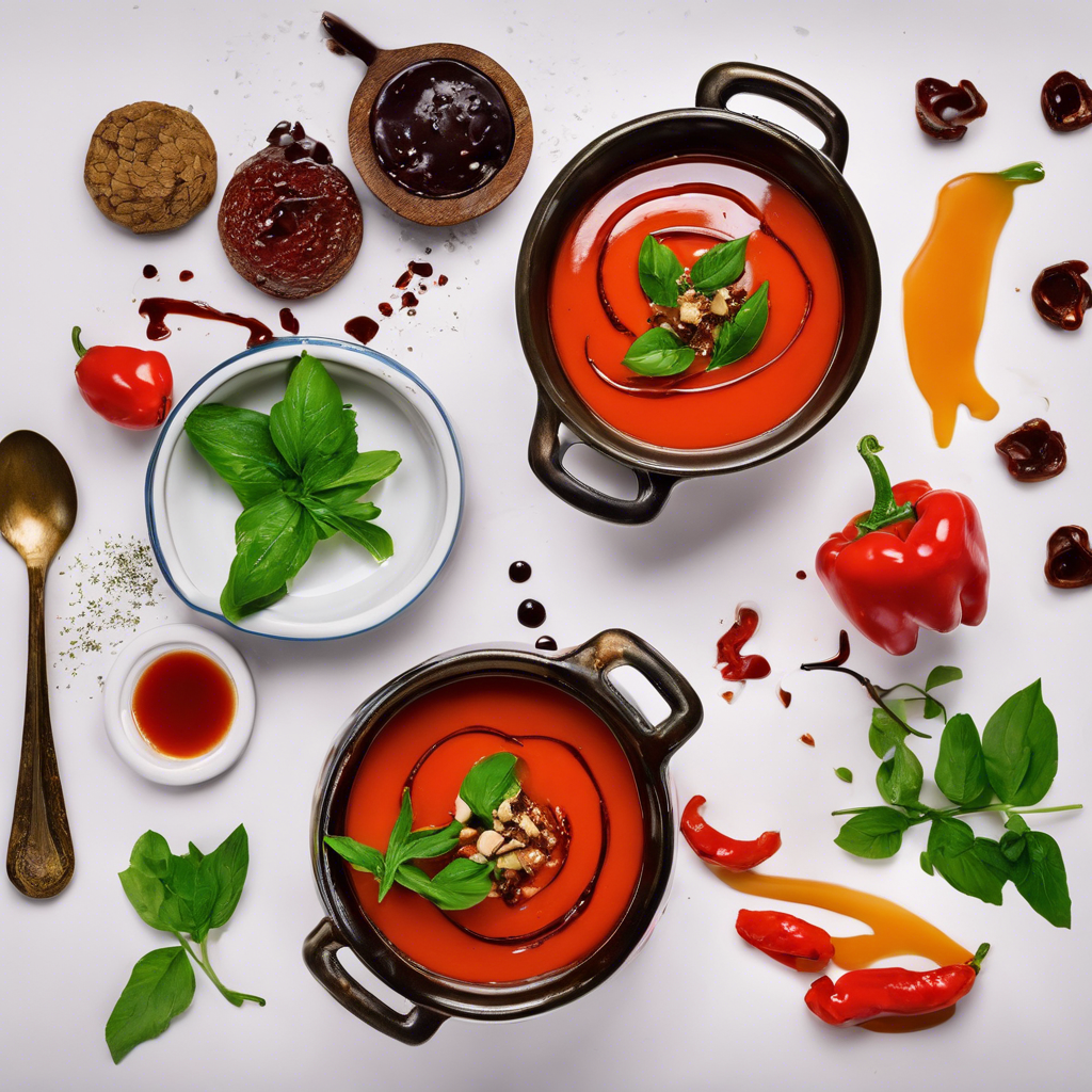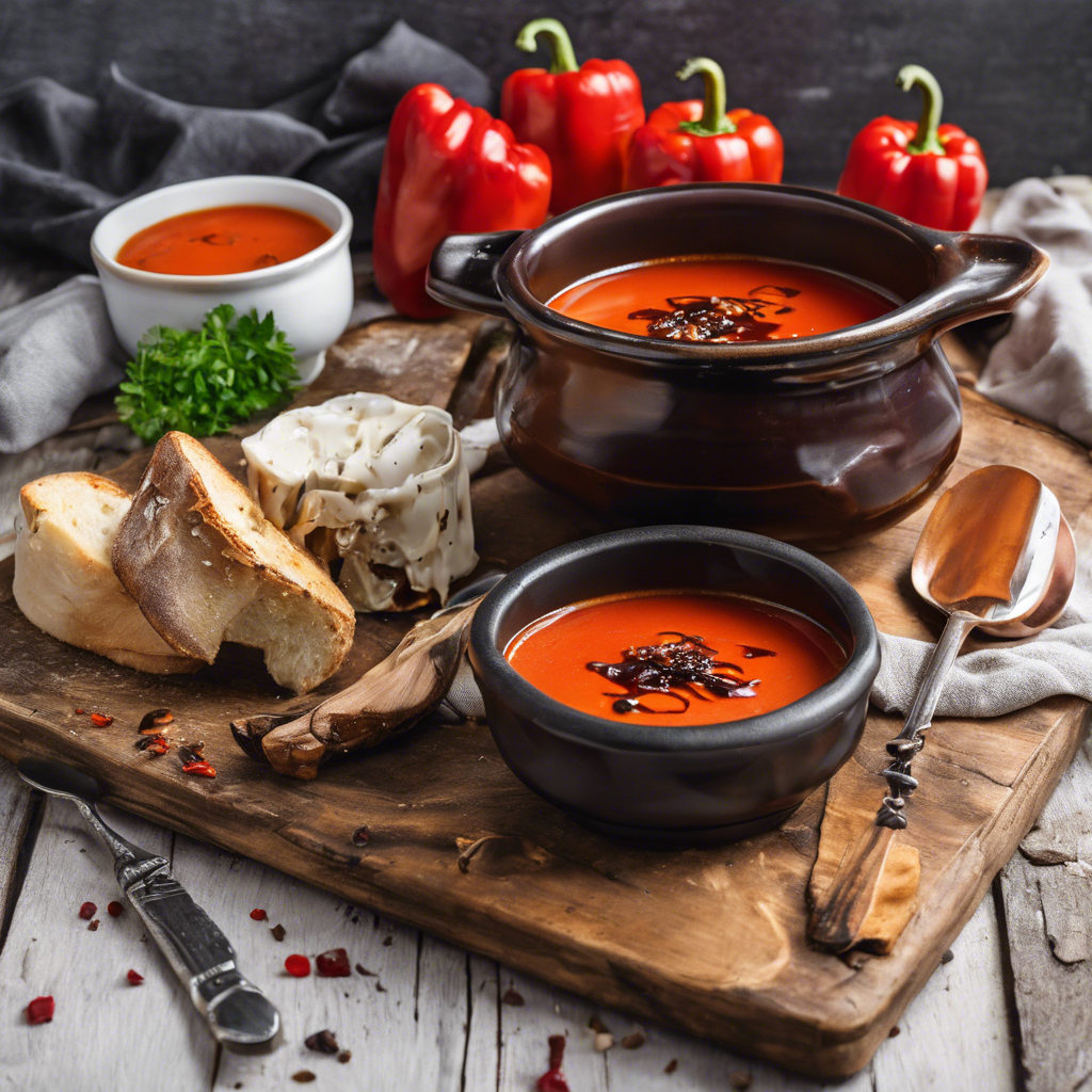 Roasted Red Pepper Soup with Balsamic Glaze is a classic dish that originated in Mediterranean cuisine. The rich, smoky flavor of roasted red peppers combined with the tangy sweetness of balsamic glaze creates a harmonious and comforting soup. This dish has been popularized by renowned chefs such as Ina Garten and Jamie Oliver, who have incorporated their own unique twists to the recipe. The best versions of this dish can be found in Mediterranean restaurants, particularly in regions like Italy and Spain, where the use of fresh, high-quality ingredients elevates the flavors. The key to a perfect Roasted Red Pepper Soup lies in the quality of the peppers and the balance of flavors in the balsamic glaze. While the traditional method involves roasting the peppers in the oven, some chefs prefer grilling them for a charred, smoky flavor. Whether enjoyed as a starter or a main course, this soup is a delightful blend of sweet, savory, and smoky notes that is sure to tantalize the taste buds.