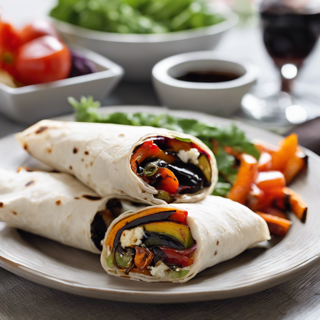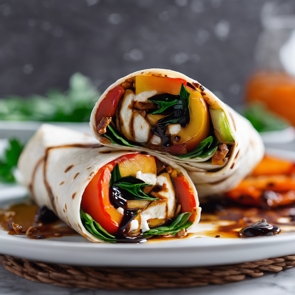 Roasted Vegetable and Goat Cheese Wrap with Balsamic Glaze Drizzle