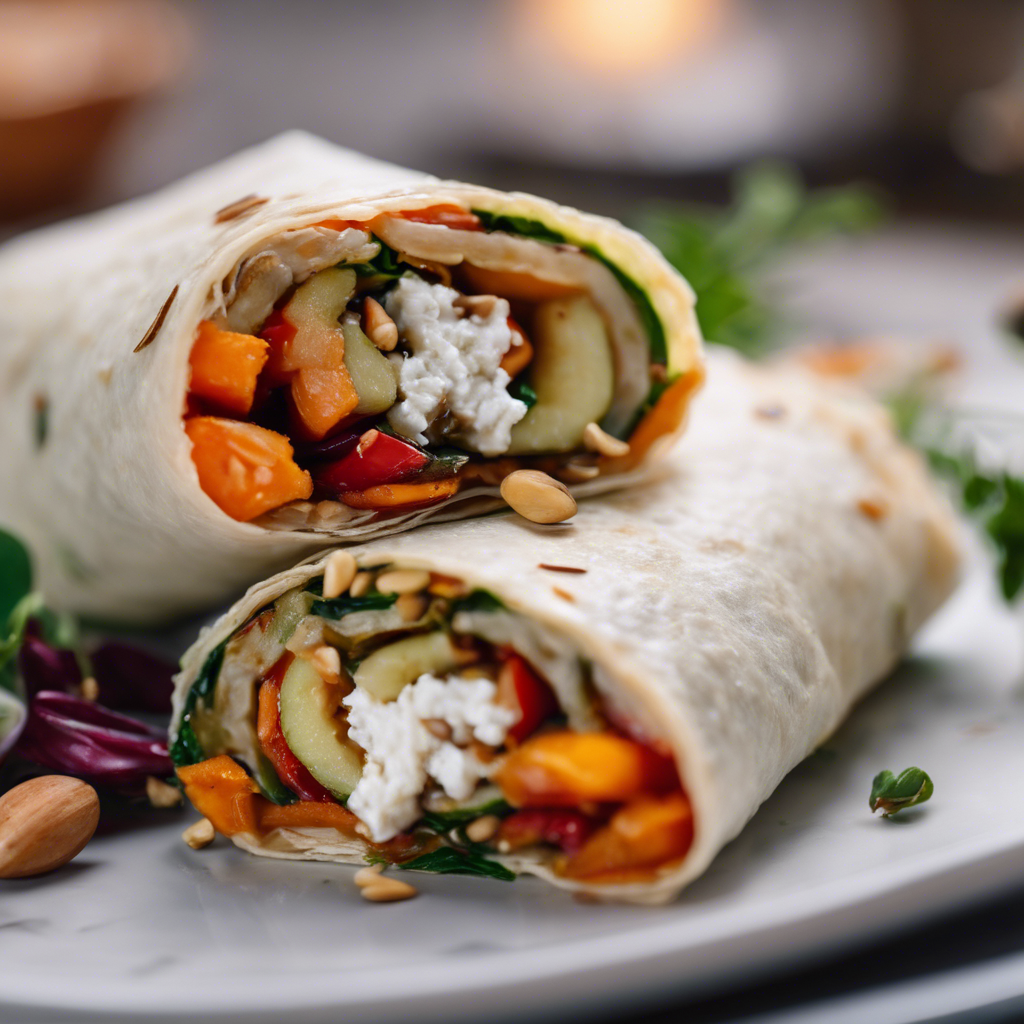 The Roasted Vegetable and Goat Cheese Wrap is a delightful combination of savory flavors and textures. This dish has a rich history, with roots in Mediterranean cuisine, where fresh vegetables and goat cheese are abundant. The addition of pine nuts adds a delightful crunch and nutty flavor to the wrap. Renowned chefs in the Mediterranean region have perfected this dish, using locally sourced vegetables and creamy goat cheese. The key to a perfect Roasted Vegetable and Goat Cheese Wrap is the balance of flavors and the quality of ingredients. The roasted vegetables should be tender and caramelized, the goat cheese creamy and tangy, and the pine nuts toasted to perfection. Today, this dish can be found in many Mediterranean-inspired restaurants, where chefs take pride in crafting the perfect wrap. The best versions of this dish can be found in coastal regions where fresh produce is abundant. When making this dish at home, it's important to pay attention to the roasting of the vegetables and the toasting of the pine nuts to bring out their full flavors. Alternatively, some variations of this dish include adding a balsamic glaze or a drizzle of honey for an extra layer of sweetness.
