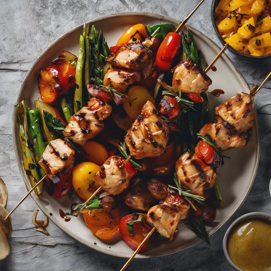 The history of Rosemary Balsamic Chicken Skewers with added vegetables can be traced back to the Mediterranean region, where the combination of fresh herbs, balsamic vinegar, and grilled meats has been a culinary tradition for centuries. This dish has evolved over time to incorporate a variety of vegetables such as bell peppers, onions, and cherry tomatoes, adding vibrant colors and flavors to the skewers. Renowned chefs in the Mediterranean, such as those in Italy and Greece, have perfected the art of marinating chicken in rosemary-infused balsamic vinegar and pairing it with an assortment of fresh vegetables. The dish has gained popularity in modern times for its healthy and flavorful appeal. Today, the best versions of this dish can be found in authentic Mediterranean restaurants that prioritize using high-quality, locally sourced ingredients. The key to getting this dish right lies in the marination process, where the chicken should be infused with the earthy aroma of rosemary and the sweet tang of balsamic vinegar. Additionally, grilling the skewers to perfection is crucial for achieving the ideal smoky flavor. For a unique twist, some chefs also incorporate alternative methods such as oven-roasting or pan-searing the skewers, offering a different take on this classic dish. Whether enjoyed at a seaside taverna in Greece or a rustic trattoria in Tuscany, Rosemary Balsamic Chicken Skewers with added vegetables are a delightful representation of Mediterranean culinary heritage.
