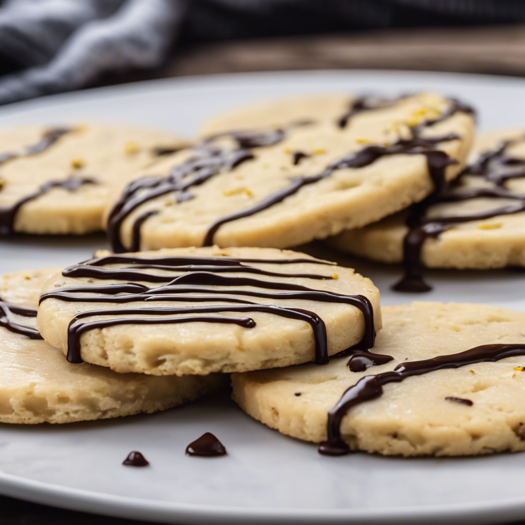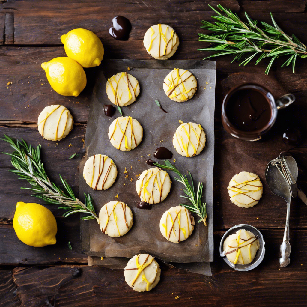 The Rosemary Lemon Shortbread Cookies with Dark Chocolate Drizzle is a delightful treat that combines the zesty flavors of lemon and the earthy aroma of rosemary in a buttery shortbread cookie, finished with a decadent dark chocolate drizzle. This delectable creation is believed to have originated in the kitchens of innovative pastry chefs who sought to elevate the classic shortbread cookie with a unique twist. The infusion of fresh rosemary and tangy lemon zest adds a refreshing dimension to the traditional shortbread, while the dark chocolate drizzle provides a rich and indulgent contrast. This delightful combination of flavors and textures has captivated the palates of dessert enthusiasts and has become a popular choice for those seeking a sophisticated yet approachable sweet treat. While the exact origins of the Rosemary Lemon Shortbread Cookies with Dark Chocolate Drizzle are not definitively documented, it is believed to have gained popularity in upscale bakeries and gourmet restaurants, particularly in regions known for their culinary innovation and dedication to using fresh, high-quality ingredients. Chefs with a passion for experimenting with flavor profiles and reimagining classic recipes have been instrumental in popularizing this delightful confection. Today, the best versions of these cookies can be found in artisanal bakeries and pastry shops that prioritize the use of fresh, locally sourced ingredients. Achieving the perfect balance of flavors in this recipe is crucial, with the quality of the rosemary, lemon, and dark chocolate playing pivotal roles in the overall taste experience. The incorporation of finely chopped fresh rosemary and the precise amount of lemon zest are essential to infuse the cookies with the desired aromatic and citrusy notes. For those looking to explore alternative methods, some variations of this recipe may include incorporating a hint of sea salt to enhance the flavor profile or experimenting with different types of chocolate for the drizzle, such as a velvety milk chocolate or a bittersweet option for a more intense contrast. Whether enjoyed as a delightful accompaniment to a cup of tea or coffee, or presented as an elegant dessert at a gathering, the Rosemary Lemon Shortbread Cookies with Dark Chocolate Drizzle continue to enchant dessert enthusiasts with their irresistible blend of flavors and textures.