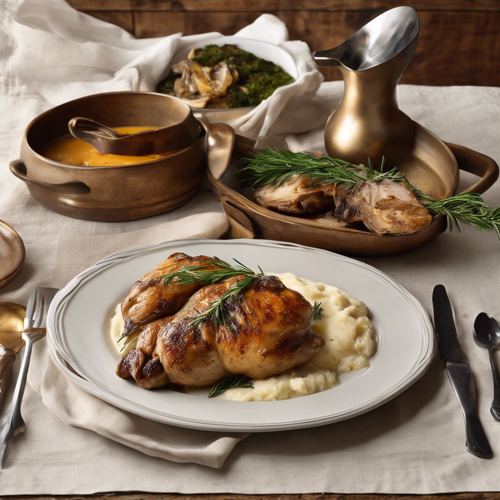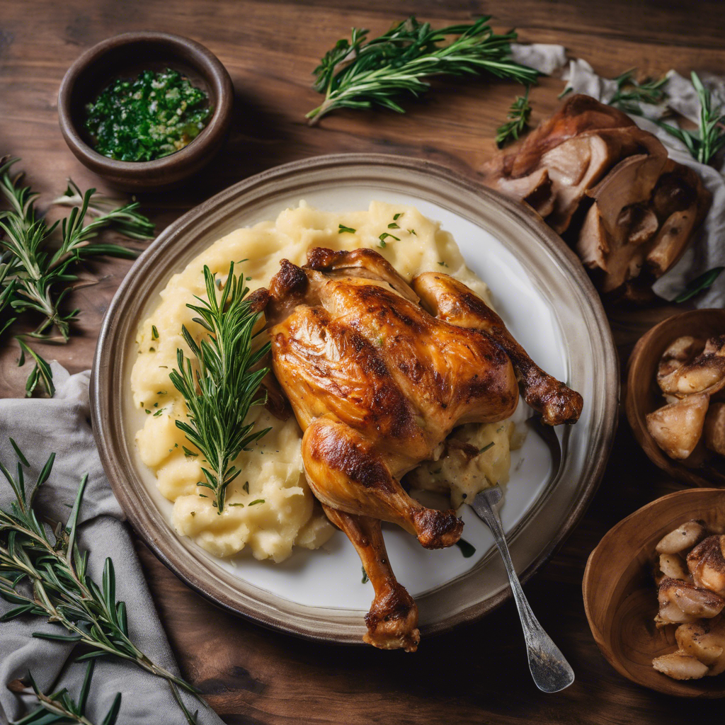 The history of Rosemary Roasted Chicken with a side of creamy mashed potatoes dates back to the rustic kitchens of Tuscany, Italy. Renowned for its simplicity and robust flavors, this dish has become a staple in Italian and Mediterranean cuisine. The succulent chicken is infused with the earthy aroma of fresh rosemary, creating a tantalizing blend of flavors. Paired with creamy mashed potatoes, it offers a comforting and satisfying meal. Chefs across the globe have put their own spin on this classic, but the key lies in using high-quality, organic ingredients and mastering the art of roasting to perfection. For the best version of this dish, head to traditional Italian trattorias or family-owned restaurants where the authenticity of the recipe shines through. The secret to achieving the perfect balance lies in the careful selection of rosemary and the slow roasting process, ensuring the chicken is tender and juicy. Whether it's a cozy family dinner or a special occasion, Rosemary Roasted Chicken with creamy mashed potatoes is a timeless favorite that never fails to impress.