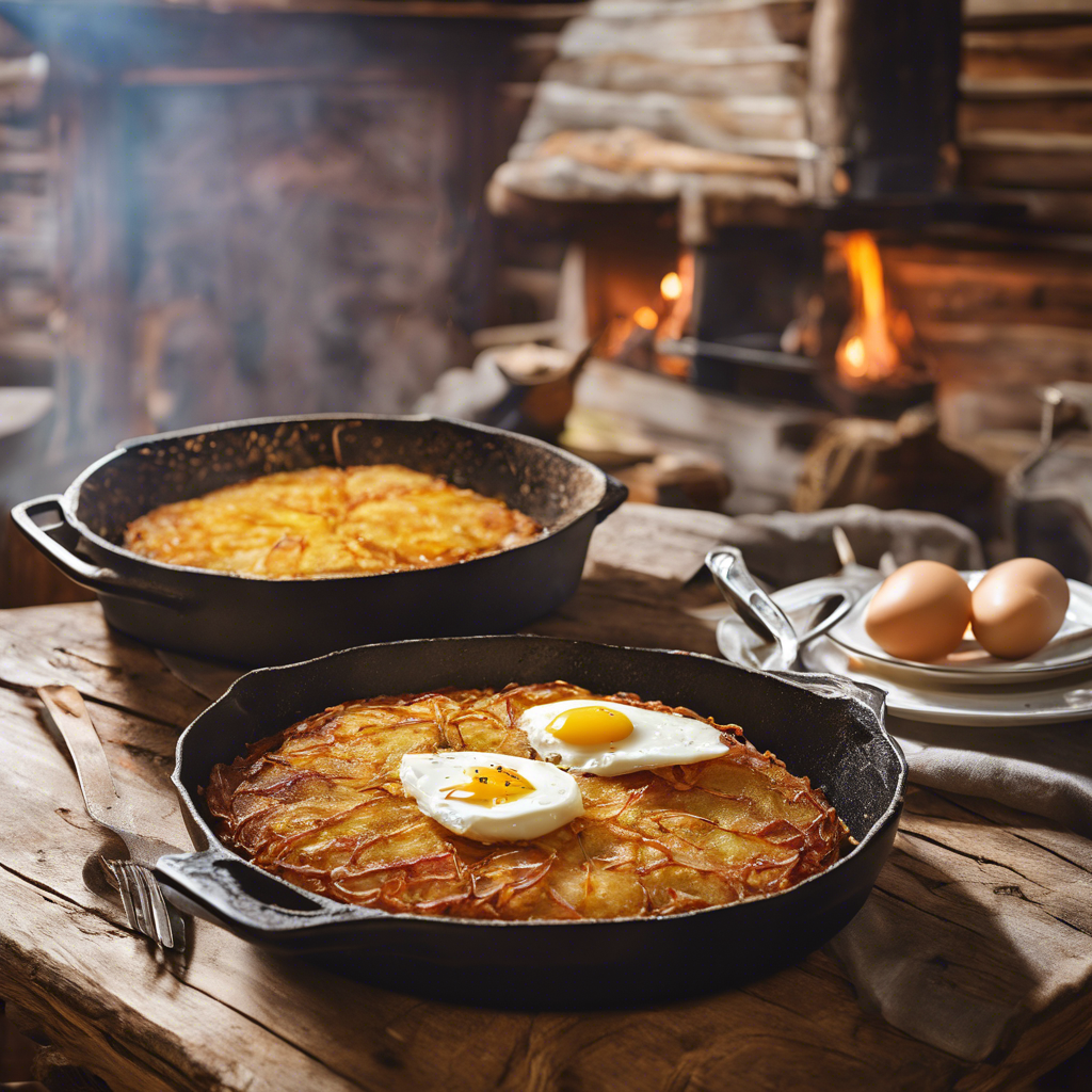 - Place a large plate over the skillet and carefully flip the rosti onto the plate.