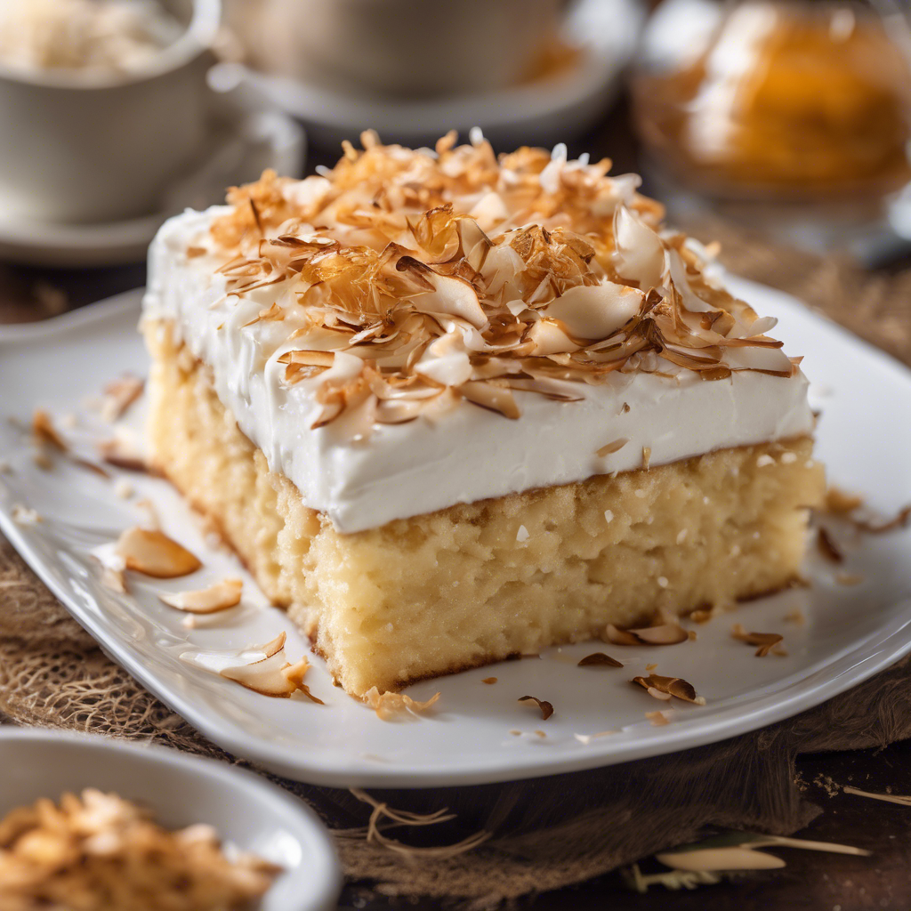 Rum Tres Leches Cake with Toasted Coconut Flakes