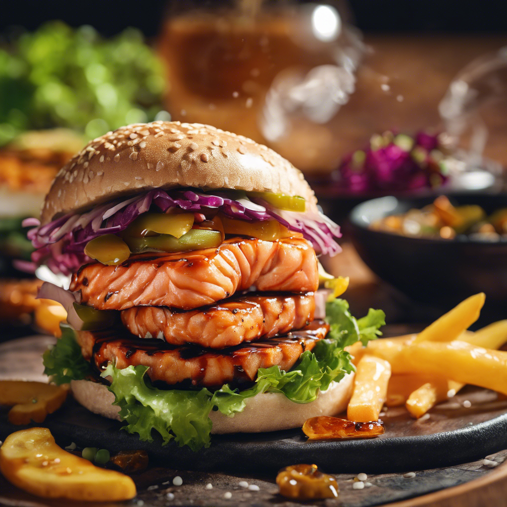 The history of the Salmon Burger with a teriyaki glaze can be traced back to the fusion of Japanese and American culinary influences. This delectable dish combines the rich, buttery flavor of salmon with the sweet and savory notes of teriyaki glaze, creating a mouthwatering burger patty. Chefs in the Pacific Northwest, known for their expertise in seafood, were among the first to experiment with this innovative twist on the classic burger. The region's abundant supply of fresh salmon provided the perfect canvas for culinary creativity. Today, the best versions of this dish can be found in upscale seafood restaurants and trendy gastropubs, where chefs meticulously prepare the salmon patties and infuse them with the irresistible flavors of teriyaki glaze. The key to perfecting this dish lies in sourcing high-quality salmon and crafting a balanced teriyaki glaze that complements the fish without overpowering it. For those looking to recreate this dish at home, it's essential to pay attention to the quality of the salmon and the ingredients used in the teriyaki glaze. Additionally, alternative methods such as grilling or pan-searing the salmon patty can offer unique flavor profiles, adding a layer of versatility to this beloved recipe. Whether enjoyed at a renowned restaurant or homemade with care, the Salmon Burger with a teriyaki glaze is a delightful marriage of flavors that continues to captivate food enthusiasts worldwide.