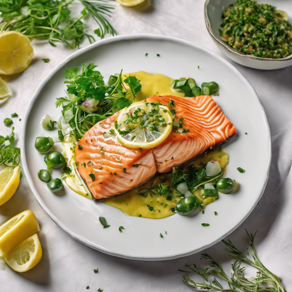 The history of the Salmon Fillet with Lemon Butter Sauce topped with a fresh herb salsa can be traced back to the Pacific Northwest, where the abundance of fresh salmon inspired chefs to create a dish that celebrates the region's bountiful seafood and vibrant flavors. Renowned chefs like Tom Douglas in Seattle and Vitaly Paley in Portland have put their own spin on this classic dish, incorporating local herbs and ingredients to elevate the flavors. The key to this dish is the perfect balance of flavors - the richness of the salmon, the tangy brightness of the lemon butter sauce, and the herbaceous freshness of the salsa. The best version of this dish can be found in upscale seafood restaurants along the West Coast, where chefs source the freshest salmon and herbs to create a truly memorable dining experience. When making this dish at home, it's important to use high-quality salmon and to not overcook it, as the fish should be tender and moist. The lemon butter sauce should be velvety and rich, with a hint of acidity from the lemon. The herb salsa, typically made with a mix of parsley, cilantro, and chives, adds a pop of color and freshness to the dish. For a twist on the classic recipe, some chefs also incorporate ingredients like capers or shallots into the herb salsa for added depth of flavor. Whether enjoyed at a top seafood restaurant or made at home, the Salmon Fillet with Lemon Butter Sauce topped with a fresh herb salsa is a dish that perfectly captures the essence of the Pacific Northwest's culinary heritage.
