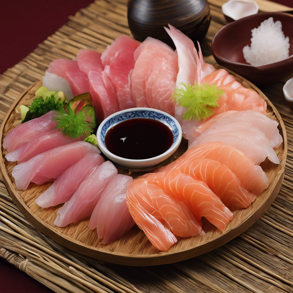 - Slice the sashimi-grade fish into thin pieces and arrange them on a serving platter.