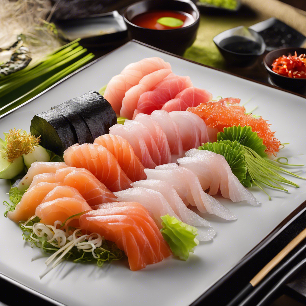 - Slice the sashimi-grade fish into thin pieces and arrange them on a serving platter.