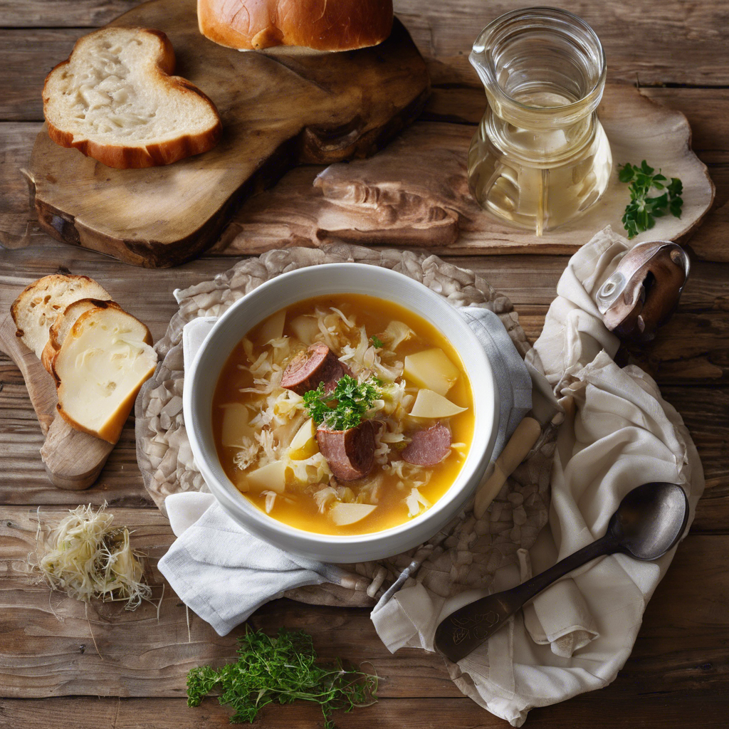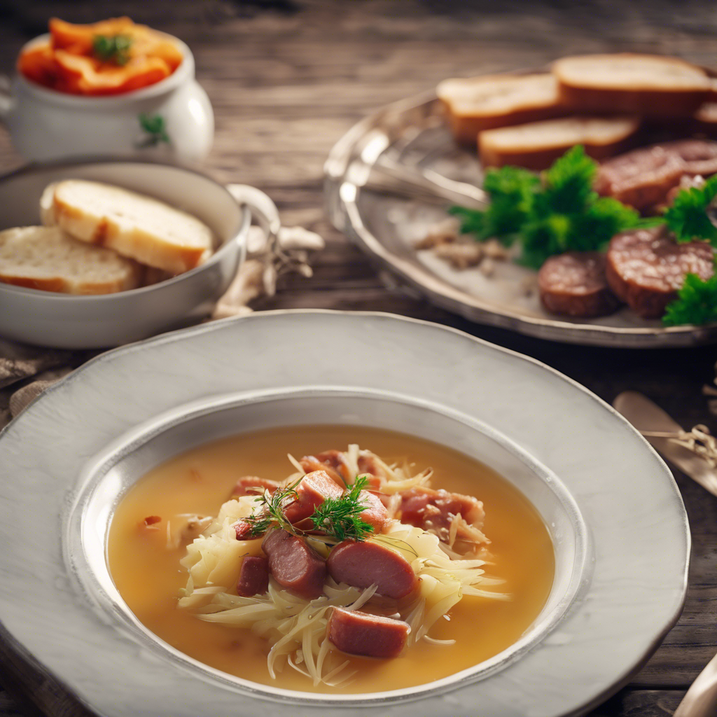 Sauerkraut soup, also known as kapusniak, is a traditional Polish dish that has been enjoyed for centuries. This hearty and flavorful soup is made with sauerkraut, a fermented cabbage that adds a tangy and slightly sour flavor to the dish. The addition of sausage slices brings a rich and savory element to the soup, making it a satisfying and comforting meal. In Poland, skilled chefs and home cooks alike take pride in preparing this beloved dish, often using family recipes that have been passed down through generations. The soup is a popular choice in restaurants throughout the country, especially during the colder months when its warming qualities are particularly appreciated. The best version of this dish can be found in traditional Polish restaurants, where the sauerkraut is carefully fermented to achieve the perfect balance of flavors. The key to making a delicious sauerkraut soup with sausage slices lies in using high-quality ingredients, including flavorful sausage and well-fermented sauerkraut. Additionally, some variations of the recipe may include the addition of potatoes, carrots, and other vegetables to enhance the soup's heartiness and depth of flavor. For those looking to try a different approach, some chefs recommend adding a splash of white wine or a dollop of sour cream to the soup to further enhance its complexity. Whether enjoyed in a cozy Polish eatery or prepared at home with a cherished family recipe, sauerkraut soup with added sausage slices is a delightful and satisfying dish that continues to hold a special place in Polish culinary tradition.