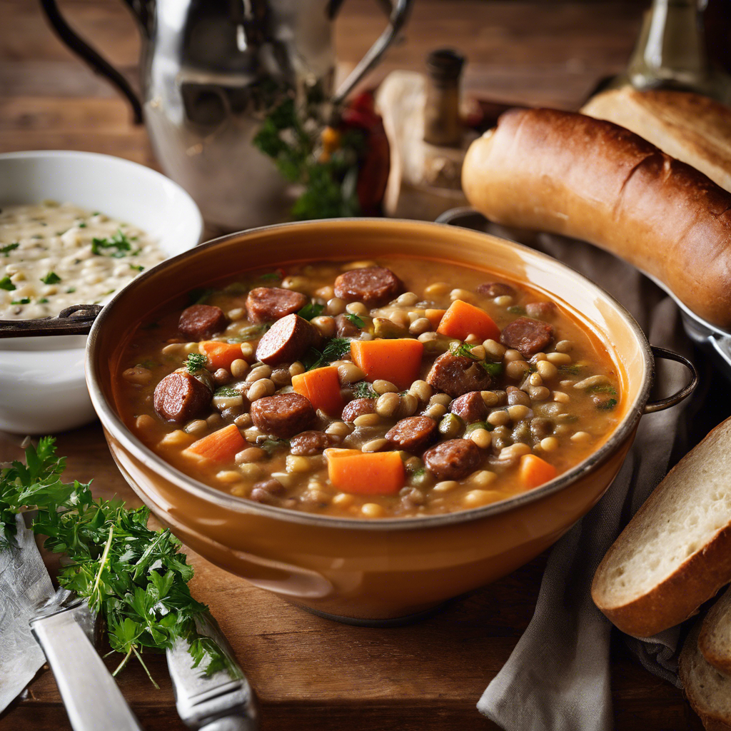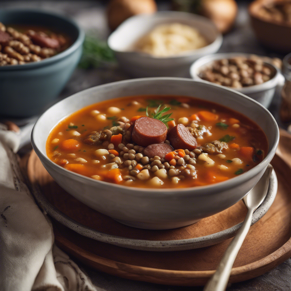 Sausage and Lentil Soup is a hearty and flavorful dish with a rich history. This comforting soup has its roots in Italian and French cuisine, where it has been a staple for centuries. The combination of savory sausage, earthy lentils, and aromatic herbs creates a satisfying and nourishing meal. In Italy, this soup is known as "Zuppa di Lenticchie e Salsiccia," and it is often enjoyed during the winter months. Italian chefs take pride in using high-quality sausages, such as spicy Italian sausage or sweet fennel sausage, to infuse the soup with robust flavors. The addition of tomatoes, garlic, and fresh herbs like rosemary and thyme adds depth to the dish. In France, the soup is called "Soupe aux Lentilles et Saucisse," and it is a beloved comfort food in regions like Auvergne and Toulouse. French chefs often use Toulouse sausage, a coarsely ground pork sausage seasoned with wine and spices, to lend a unique taste to the soup. The French version may also include mirepoix (a mix of onions, carrots, and celery) for added complexity. Today, Sausage and Lentil Soup can be found on the menus of Italian and French restaurants around the world. However, some of the best versions of this dish can be savored in traditional trattorias in Italy or cozy bistros in France, where skilled chefs prepare the soup with time-honored techniques and authentic ingredients. To make a standout Sausage and Lentil Soup at home, it's crucial to select high-quality sausages and lentils. The type of sausage used, whether it's spicy, mild, or herb-infused, can significantly impact the flavor profile of the soup. Additionally, choosing the right variety of lentils, such as French green lentils or Italian brown lentils, can enhance the texture and taste of the dish. For a unique twist on the classic recipe, some chefs recommend adding a splash of balsamic vinegar or a drizzle of extra virgin olive oil before serving to elevate the flavors. Whether enjoyed as a starter or a main course, Sausage and Lentil Soup continues to be a beloved and timeless dish that warms the soul with every spoonful.