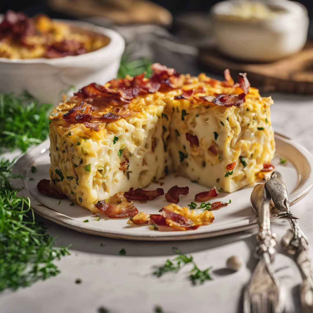 Savory Cheese and Herb Kugel with Bacon Bits