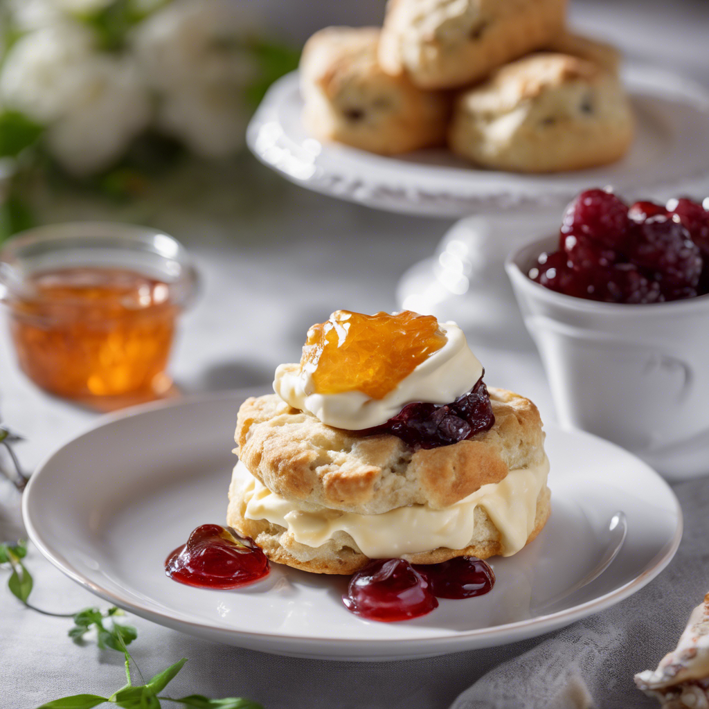 The history of scones with clotted cream and preserves dates back to the 11th century in Scotland, where they were originally made with oats and cooked on a griddle. Over time, the recipe evolved to include flour, butter, and baking powder, resulting in the light and fluffy scones we know today. The tradition of serving scones with clotted cream and preserves became popular in England, particularly in the Devon and Cornwall regions, where it became known as a cream tea. The best version of this dish can be found in quaint tea rooms in the English countryside, where expert bakers carefully craft the perfect scones and serve them with rich clotted cream and fruity preserves. The key to a delicious scone with clotted cream and preserves lies in the quality of the ingredients - the scones should be tender and buttery, the clotted cream thick and indulgent, and the preserves bursting with fruit flavor. While the traditional method of serving scones with clotted cream and preserves is timeless, some modern variations include adding a twist to the classic scone recipe with ingredients like chocolate chips or dried fruit.