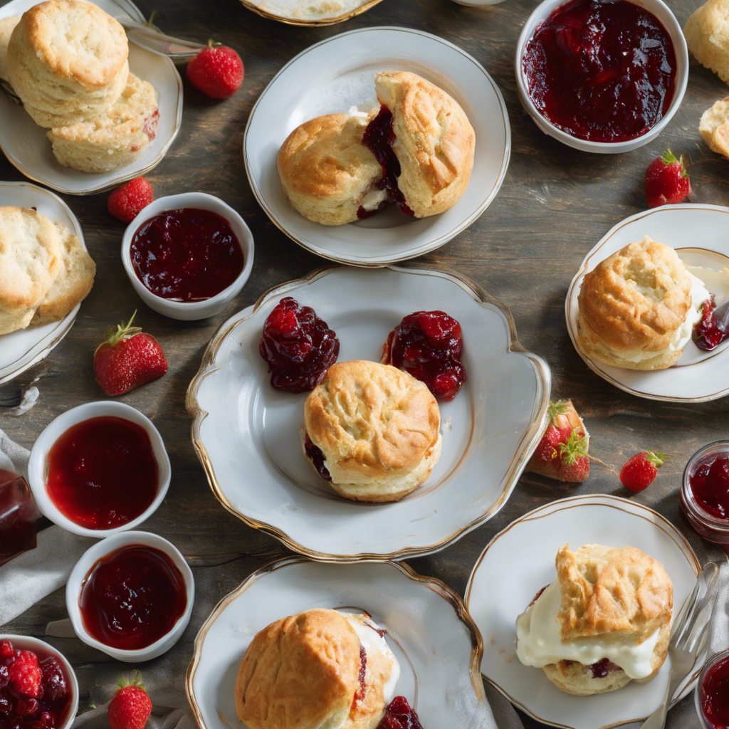 Scones with jam and clotted cream, a quintessentially British treat, have a rich history dating back to the 11th century. Originating in Scotland, scones were initially made with oats and cooked on a griddle. Over time, the recipe evolved to include flour, creating the classic scone we know today. The tradition of serving scones with jam and clotted cream gained popularity in the 19th century in the South West of England, particularly in Devon and Cornwall, where it became known as the "Devonshire Tea" or "Cornish Cream Tea." This delightful combination of warm, crumbly scones, sweet jam, and indulgent clotted cream has since become a beloved part of British culinary culture. Renowned chefs and tearooms across the UK, such as The Ritz in London and Betty's Tea Room in Yorkshire, have perfected the art of serving scones with jam and clotted cream, attracting locals and tourists alike. The key to a perfect scone lies in achieving the ideal balance of lightness and crumbliness, while the jam should be made from high-quality, ripe fruits, and the clotted cream should be thick, smooth, and decadent. While the classic method of enjoying scones with jam and clotted cream remains popular, some innovative chefs have put their own spin on the dish, such as incorporating different flavors into the scones or experimenting with alternative types of jam. Today, the best versions of scones with jam and clotted cream can be found in traditional tearooms and upscale hotels throughout the UK, where the time-honored recipe is faithfully followed to ensure a delightful and authentic experience. Whether enjoyed in a charming tearoom in the English countryside or at a sophisticated hotel in the heart of London, scones with jam and clotted cream continue to be a beloved indulgence for locals and visitors seeking a taste of British culinary heritage.