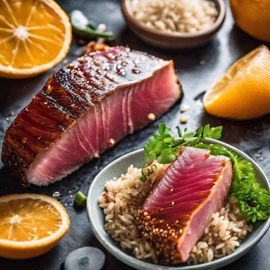 Seared Ahi Tuna with Brown Rice, served with a citrus soy glaze, has a rich history rooted in the fusion of Asian and Hawaiian cuisines. This dish originated in Hawaii, where chefs sought to combine the delicate flavors of fresh Ahi tuna with the nutty texture of brown rice, creating a harmonious balance of taste and texture. The citrus soy glaze adds a zesty and savory element, elevating the dish to a culinary masterpiece. Renowned chefs like Roy Yamaguchi and Alan Wong have popularized this dish, making it a staple in their restaurants. Today, the best versions of this dish can be found in high-quality seafood restaurants, where the freshness of the tuna and the balance of the glaze are paramount. The key to perfecting this dish lies in sourcing the freshest Ahi tuna and mastering the art of searing it to perfection, while the citrus soy glaze should strike a delicate balance between tangy and savory notes. For a unique twist, some chefs also incorporate sesame seeds or a touch of wasabi to add depth to the flavor profile. Whether enjoyed in a fine dining establishment or prepared at home, Seared Ahi Tuna with Brown Rice and citrus soy glaze is a culinary delight that continues to captivate food enthusiasts worldwide.