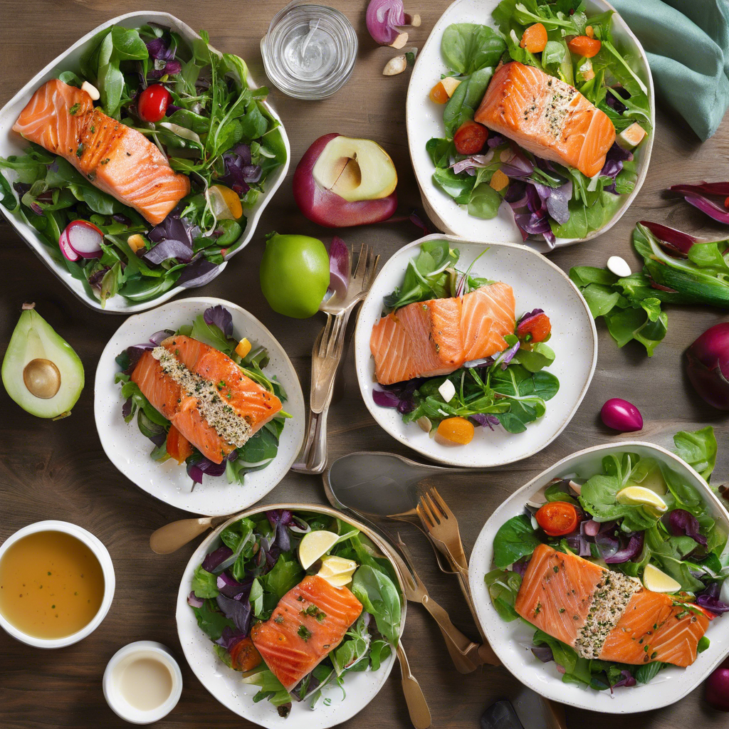- Divide the salad mixture onto 4 plates. Place a seared salmon fillet on top of each salad.