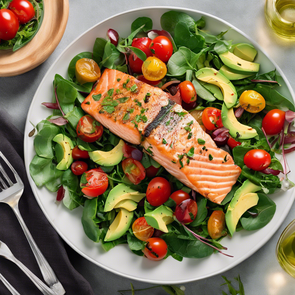 The Seared Salmon Salad with added avocado and cherry tomatoes is a modern twist on a classic dish that has become a favorite among seafood enthusiasts. This delectable salad combines the rich flavors of seared salmon with the creamy texture of avocado and the burst of sweetness from cherry tomatoes. The dish has its roots in the Pacific Northwest, where fresh salmon is abundant and celebrated. Renowned chefs in the region have elevated this dish by incorporating local, seasonal ingredients, creating a harmonious blend of flavors and textures. For the best version of this dish, seek out restaurants that prioritize using sustainably sourced salmon and ripe, flavorful avocados. The key to perfecting this salad lies in the quality of the ingredients and the precise searing of the salmon to achieve a crispy exterior while maintaining a tender, flaky interior. Whether enjoyed at a coastal bistro or prepared at home, this Seared Salmon Salad with avocado and cherry tomatoes is a delightful celebration of fresh, vibrant flavors.