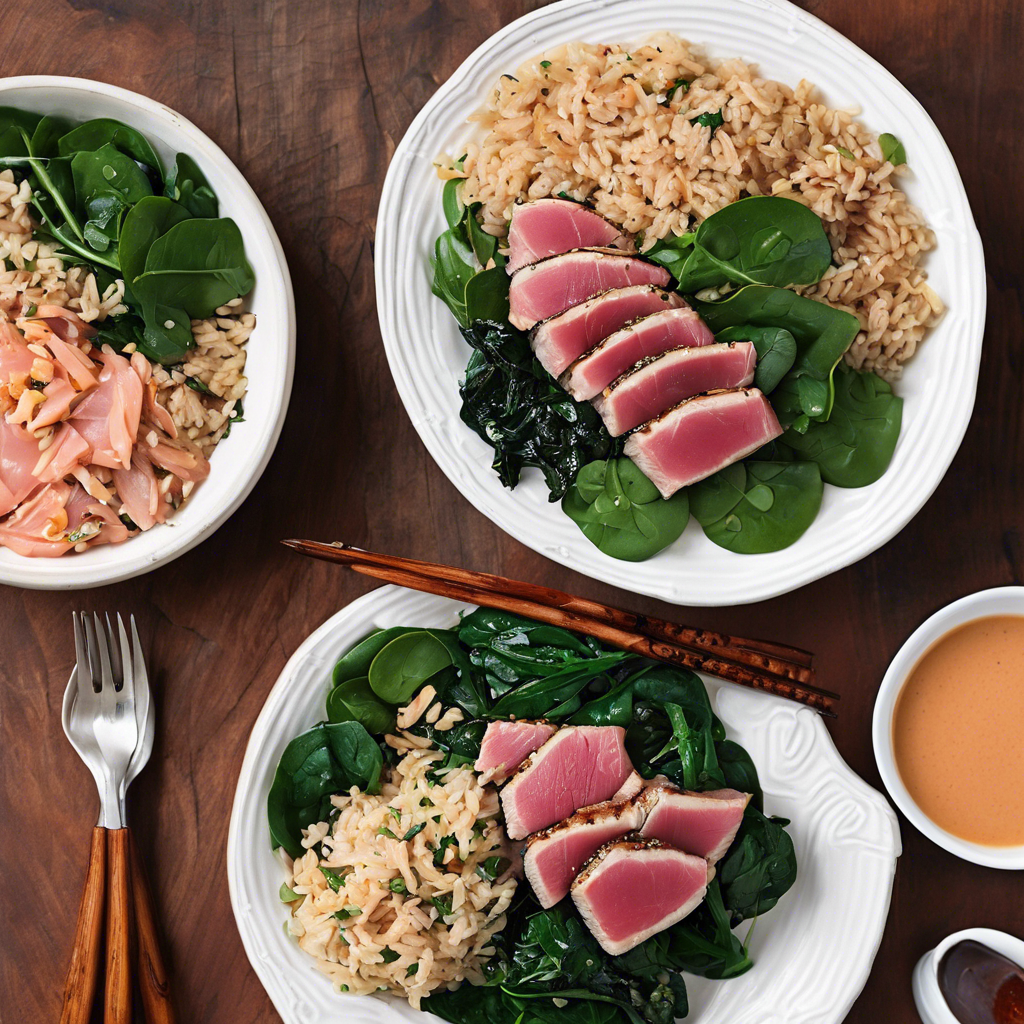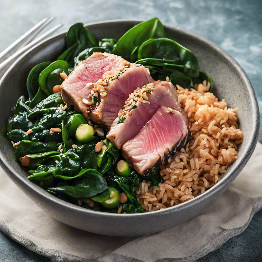 Seared Tuna and Sautéed Spinach Brown Rice Bowl with a spicy sriracha mayo drizzle is a modern fusion dish that combines the freshness of seared tuna with the earthy flavors of sautéed spinach and nutty brown rice, all brought together with a zesty sriracha mayo drizzle. This dish has its roots in the vibrant culinary scene of coastal regions, where fresh seafood and local produce inspire innovative creations. The dish gained popularity in the 21st century as chefs began experimenting with bold flavors and healthy ingredients. It has since become a staple in many contemporary restaurants, especially those with a focus on Asian fusion or seafood cuisine. The key to a perfect Seared Tuna and Sautéed Spinach Brown Rice Bowl lies in the quality of the tuna, which should be fresh and expertly seared to achieve a tender, melt-in-your-mouth texture. The sautéed spinach should be seasoned to perfection, complementing the richness of the tuna, while the brown rice provides a wholesome base for the dish. For those seeking the best version of this dish, coastal cities known for their seafood, such as Tokyo, Honolulu, or Sydney, offer exceptional renditions. However, with the right ingredients and technique, this delectable bowl can be recreated in any kitchen, bringing a taste of coastal culinary innovation to your table.