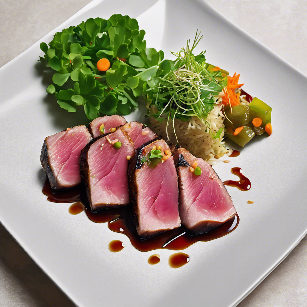 Seared Tuna with Soy Ginger Glaze is a dish that originated in Japan, where it is known as "Maguro no tataki." The dish gained popularity in the United States in the 1980s as part of the fusion cuisine movement. Renowned chefs like Nobu Matsuhisa and Roy Yamaguchi played a significant role in popularizing this dish in their respective restaurants. The key to a perfect Seared Tuna with Soy Ginger Glaze lies in the quality of the tuna, the precise searing technique, and the balance of flavors in the soy ginger glaze. Today, the best versions of this dish can be found in high-end sushi restaurants and upscale Asian fusion eateries. The dish has become a staple in modern Asian cuisine, offering a delightful combination of flavors and textures.
