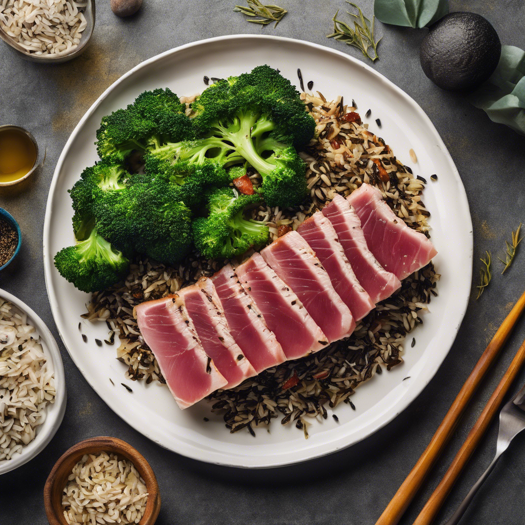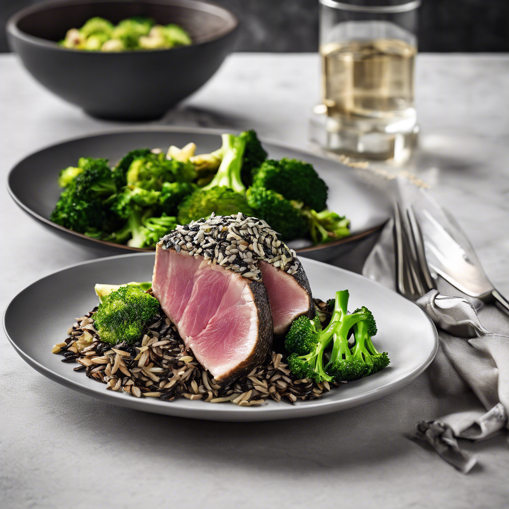 Seared Tuna with Wild Rice and Steamed Broccoli is a dish that has its roots in the fusion of Asian and Western cuisines. The dish gained popularity in the 1980s as part of the growing interest in healthy and flavorful dining options. Renowned chefs like Nobu Matsuhisa and Jean-Georges Vongerichten were instrumental in popularizing this dish in their respective restaurants, infusing it with their signature culinary styles. Today, the best versions of this dish can be found in high-end seafood restaurants and Asian fusion eateries, where the quality of the tuna is paramount. The key to a perfect seared tuna lies in using fresh, sushi-grade fish and achieving a crispy exterior while maintaining a rare, tender center. The wild rice adds a nutty flavor and chewy texture, complementing the rich, meaty tuna. The steamed broccoli provides a refreshing contrast, completing the dish with its vibrant color and crispness. For a twist on the traditional preparation, some chefs marinate the tuna in a blend of soy sauce, ginger, and sesame oil before searing, adding an extra layer of umami flavor. This dish continues to be a favorite among health-conscious diners and seafood enthusiasts, offering a delightful combination of flavors and textures that never fails to impress.