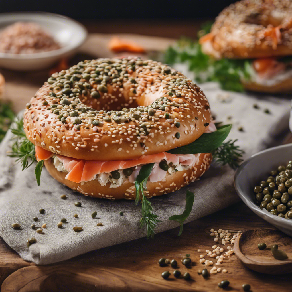 The Sesame Bagel with Lox and Capers has a rich history rooted in New York City's Jewish delis. This iconic dish features a toasted sesame bagel topped with silky slices of cured salmon, tangy capers, and a schmear of cream cheese. The dish gained popularity in the early 20th century as Jewish immigrants brought their culinary traditions to the bustling streets of NYC. Today, renowned delis like Russ & Daughters and Zabar's continue to serve up this classic combination, with each chef adding their own unique touch. The key to a perfect Sesame Bagel with Lox and Capers lies in the quality of the ingredients, especially the fresh, thinly sliced lox and the perfectly toasted sesame bagel. For a twist, some chefs incorporate red onion, dill, or even a squeeze of lemon to elevate the flavors. Whether enjoyed in a bustling deli in Manhattan or recreated at home, this dish remains a beloved staple in New York's culinary scene.