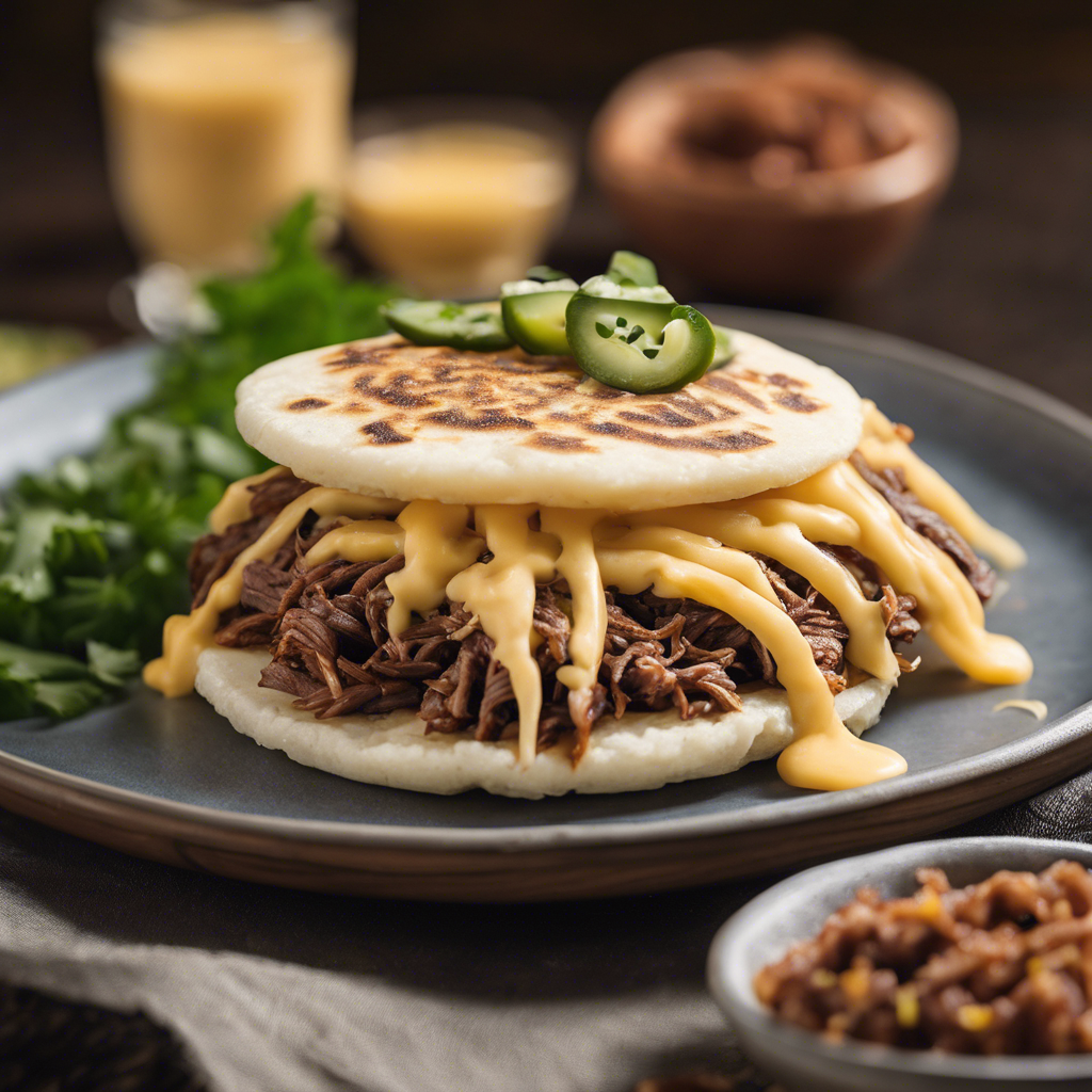 The history of Shredded Beef and Cheese Arepas with a drizzle of chipotle aioli can be traced back to the traditional Venezuelan cuisine. Arepas, a staple in Venezuelan and Colombian diets, are cornmeal patties that are grilled, baked, or fried. The addition of shredded beef and cheese creates a savory and satisfying filling, while the chipotle aioli adds a spicy and creamy kick. Renowned chefs like Lorena Garcia have popularized this dish, infusing it with modern flair. In recent years, it has gained popularity in the United States, with restaurants in Miami and New York offering their own unique takes on this classic dish. For the best version of this dish, it's crucial to get the arepas just right – they should have a crispy exterior and a soft, fluffy interior. The shredded beef should be tender and well-seasoned, and the cheese should be gooey and flavorful. The chipotle aioli should have the perfect balance of smokiness and heat to complement the other ingredients. For a twist on the traditional recipe, some chefs opt to braise the beef in a flavorful broth or marinate it in a special blend of spices before shredding it. Additionally, experimenting with different types of cheese, such as queso fresco or Oaxaca, can add an exciting twist to the dish. Overall, Shredded Beef and Cheese Arepas with chipotle aioli are a delicious fusion of flavors and textures, representing the rich culinary heritage of Venezuela and Colombia.