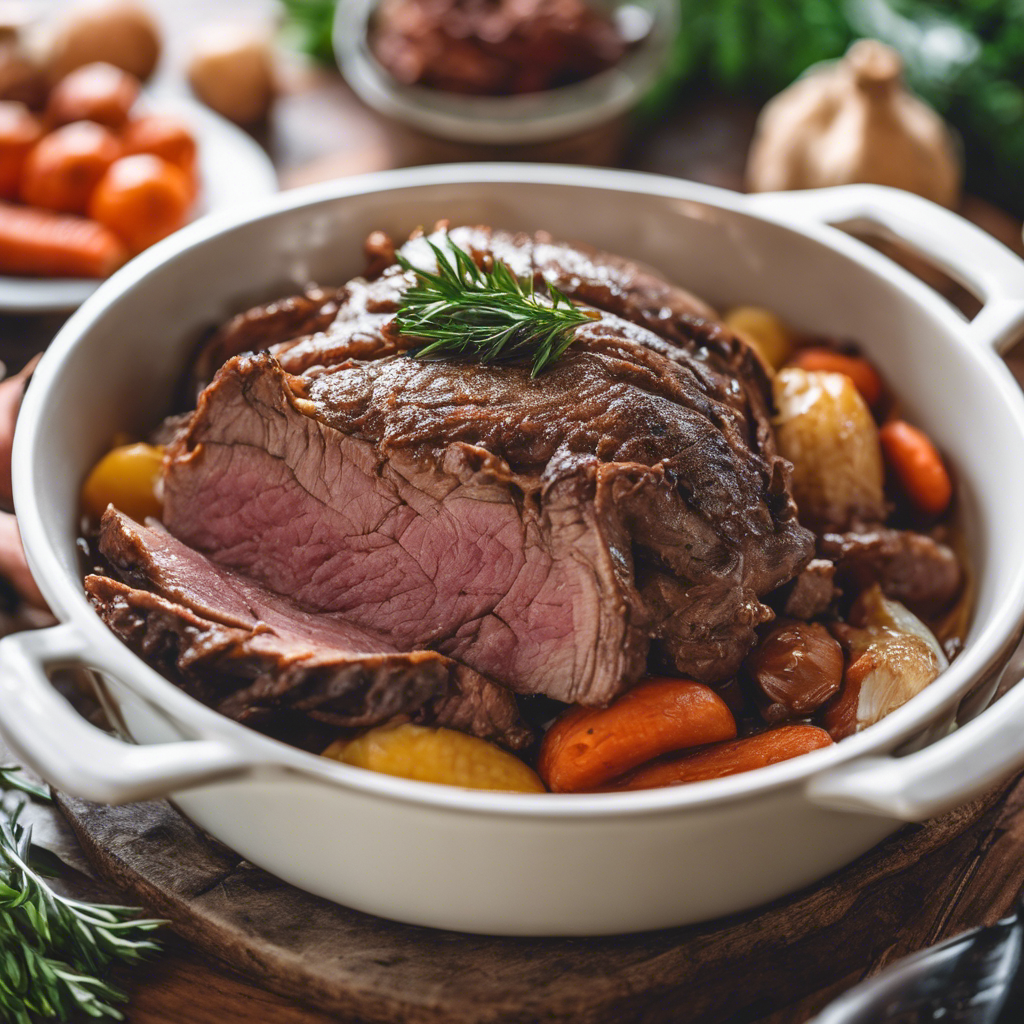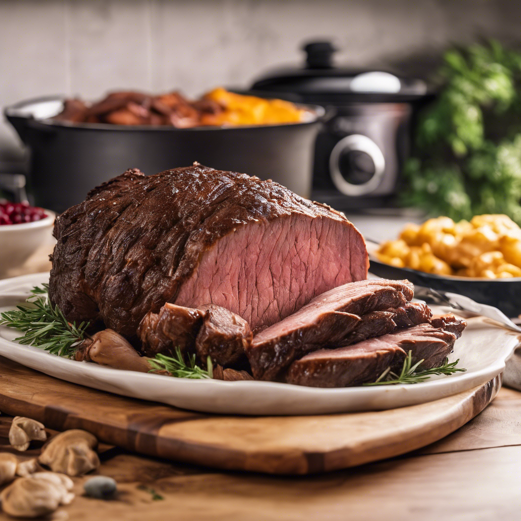 - Once the roast is cooked, remove it from the slow cooker and let it rest for 10 minutes before slicing.