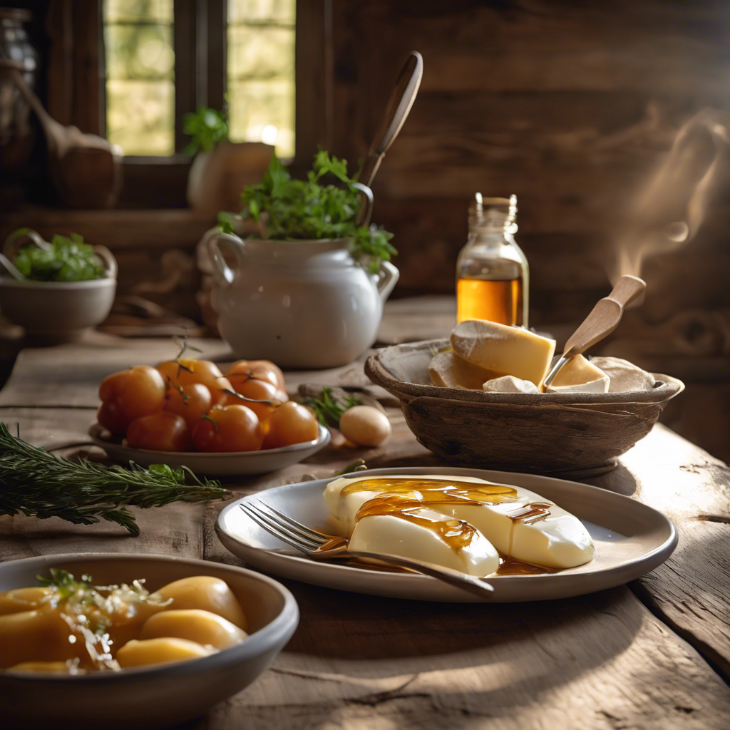 Smoked Mozzarella with honey drizzle is a delectable dish that combines the rich, smoky flavor of mozzarella with the sweet, golden touch of honey. This unique combination has its roots in Italian cuisine, where the tradition of smoking cheese dates back centuries. Renowned chefs like Mario Batali have popularized this dish, infusing it with their own creative flair. The best version of this dish can be found in authentic Italian restaurants, particularly in the regions of Campania and Lombardy. The key to perfecting this dish lies in the quality of the smoked mozzarella and the choice of honey, as they harmonize to create a tantalizing flavor profile. For a twist, some chefs also incorporate balsamic glaze or truffle honey for an extra layer of complexity. Whether enjoyed as an appetizer or a dessert, this dish is a true culinary delight that tantalizes the taste buds with its contrasting yet complementary flavors.