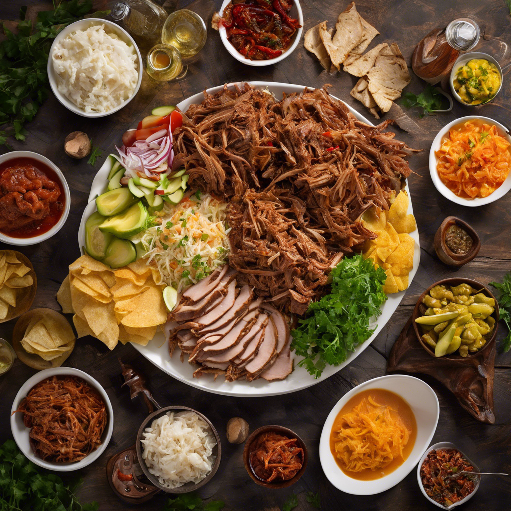 The history of the Smoked Pulled Pork Platter with spicy BBQ sauce can be traced back to the southern United States, where pitmasters and chefs have been perfecting the art of smoking and barbecuing for generations. This dish is a staple in regions like Texas, Tennessee, and the Carolinas, where it is often served at family gatherings, barbecues, and local restaurants. The succulent, tender pork is slow-cooked to perfection, then hand-pulled and smothered in a spicy, tangy BBQ sauce that adds a kick of flavor to every bite. The best versions of this dish can be found at renowned barbecue joints and eateries known for their expertise in smoking and grilling. To make this dish at home, it's crucial to get the smoking process just right, as well as nailing the balance of spices and heat in the BBQ sauce. Some chefs also swear by using a mix of different wood chips for smoking, such as hickory or applewood, to impart a unique flavor to the pork. Whether enjoyed on its own or in a sandwich, the Smoked Pulled Pork Platter with spicy BBQ sauce is a true delight for barbecue enthusiasts.