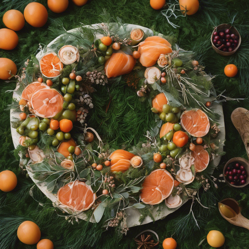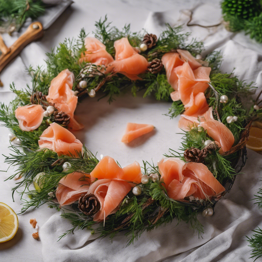The smoked salmon grazing wreath is a festive and visually stunning dish that originated in Scandinavia. This dish features thinly sliced smoked salmon arranged in a wreath shape, adorned with an array of complementary ingredients such as capers, red onion, dill, lemon wedges, and cream cheese. The wreath is often served with crackers or bread, making it a perfect appetizer for gatherings and celebrations. Renowned chefs and restaurants in Scandinavia, particularly in Norway and Sweden, have perfected this dish, with their emphasis on using high-quality, locally sourced smoked salmon and fresh, flavorful accompaniments. For the best version of this dish, sourcing top-quality smoked salmon and using fresh, vibrant garnishes are crucial. Alternatively, some variations of the dish incorporate different types of smoked fish, offering a unique twist on this classic appetizer.