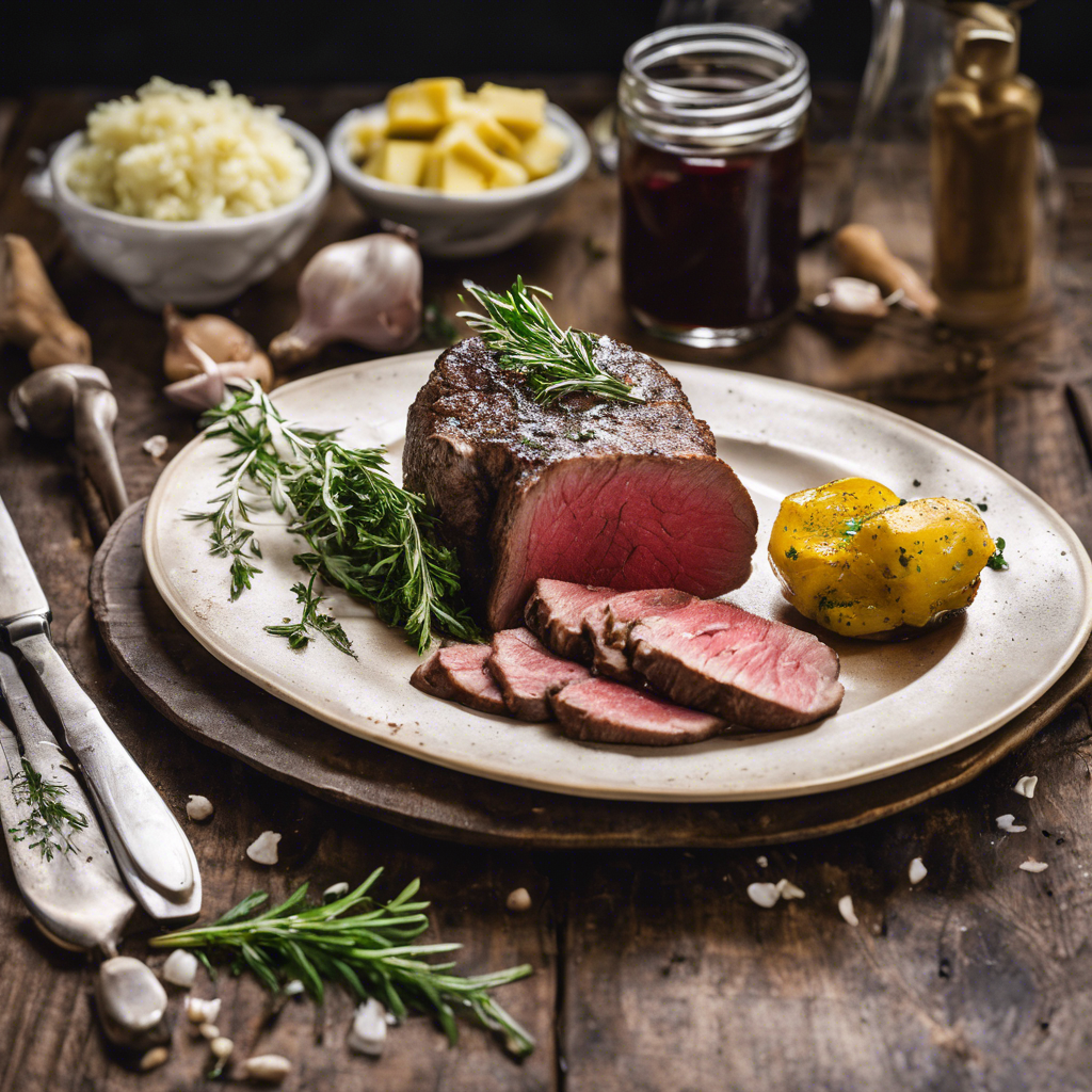 The history of Sous Vide Beef Tenderloin with garlic and herb butter can be traced back to the innovative French chef Georges Pralus in the 1970s. This cooking method involves vacuum-sealing the beef and cooking it in a water bath at a precise temperature, resulting in a perfectly tender and juicy steak. The addition of garlic and herb butter enhances the flavors, creating a luxurious dining experience. Renowned restaurants in France, such as Le Bernardin in Paris, have perfected this dish, showcasing the expertise of French culinary traditions. Today, this delectable dish can be savored in top-rated steakhouses and fine dining establishments worldwide. The key to achieving the best Sous Vide Beef Tenderloin with garlic and herb butter lies in using high-quality beef, infusing it with aromatic herbs and garlic, and precisely controlling the cooking temperature. This method ensures that the meat is cooked to perfection, delivering a melt-in-your-mouth texture with rich, savory flavors. For those seeking an alternative approach, grilling or pan-searing the beef after sous vide cooking can add a delightful charred crust, elevating the dish to new heights.